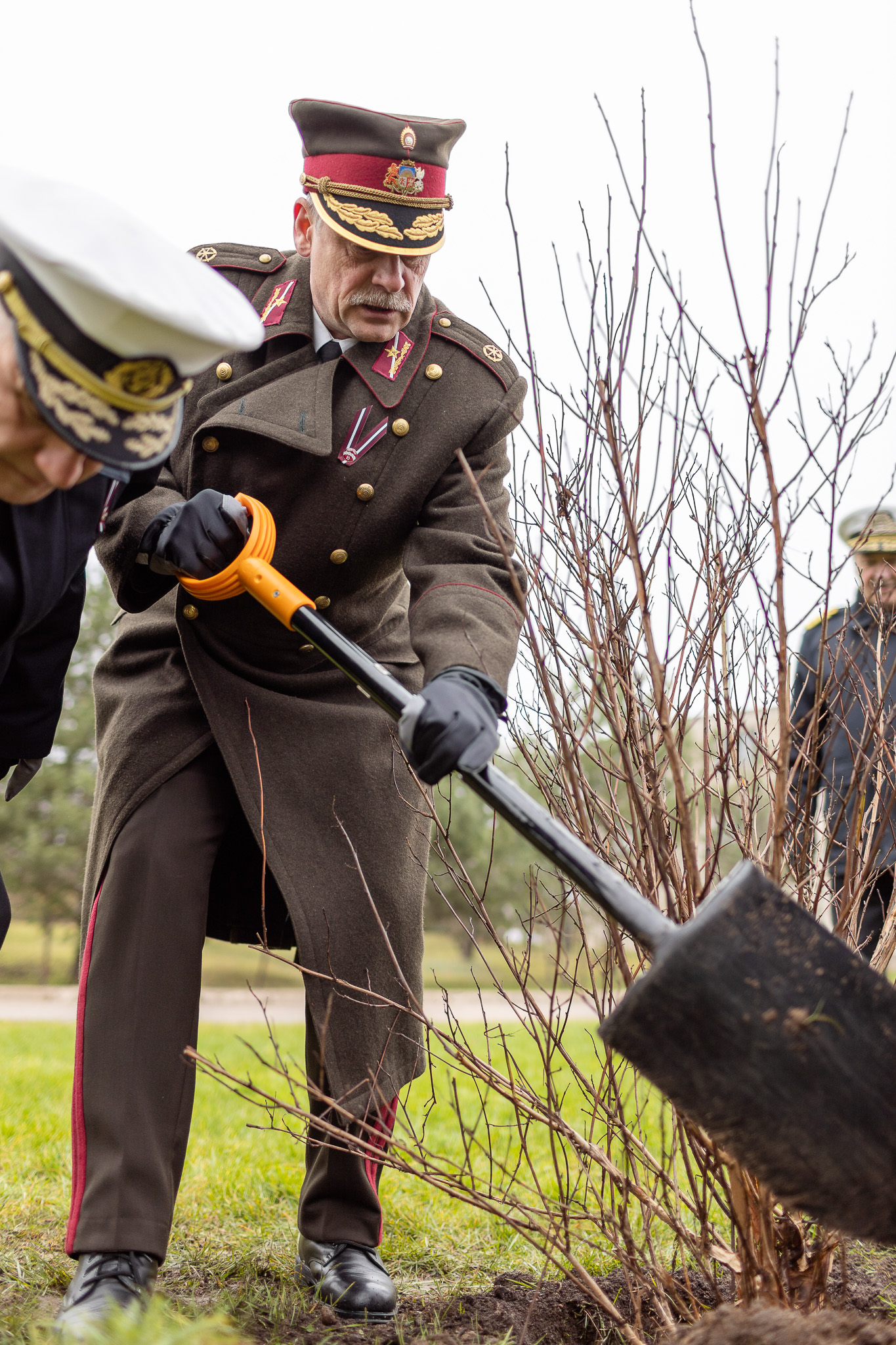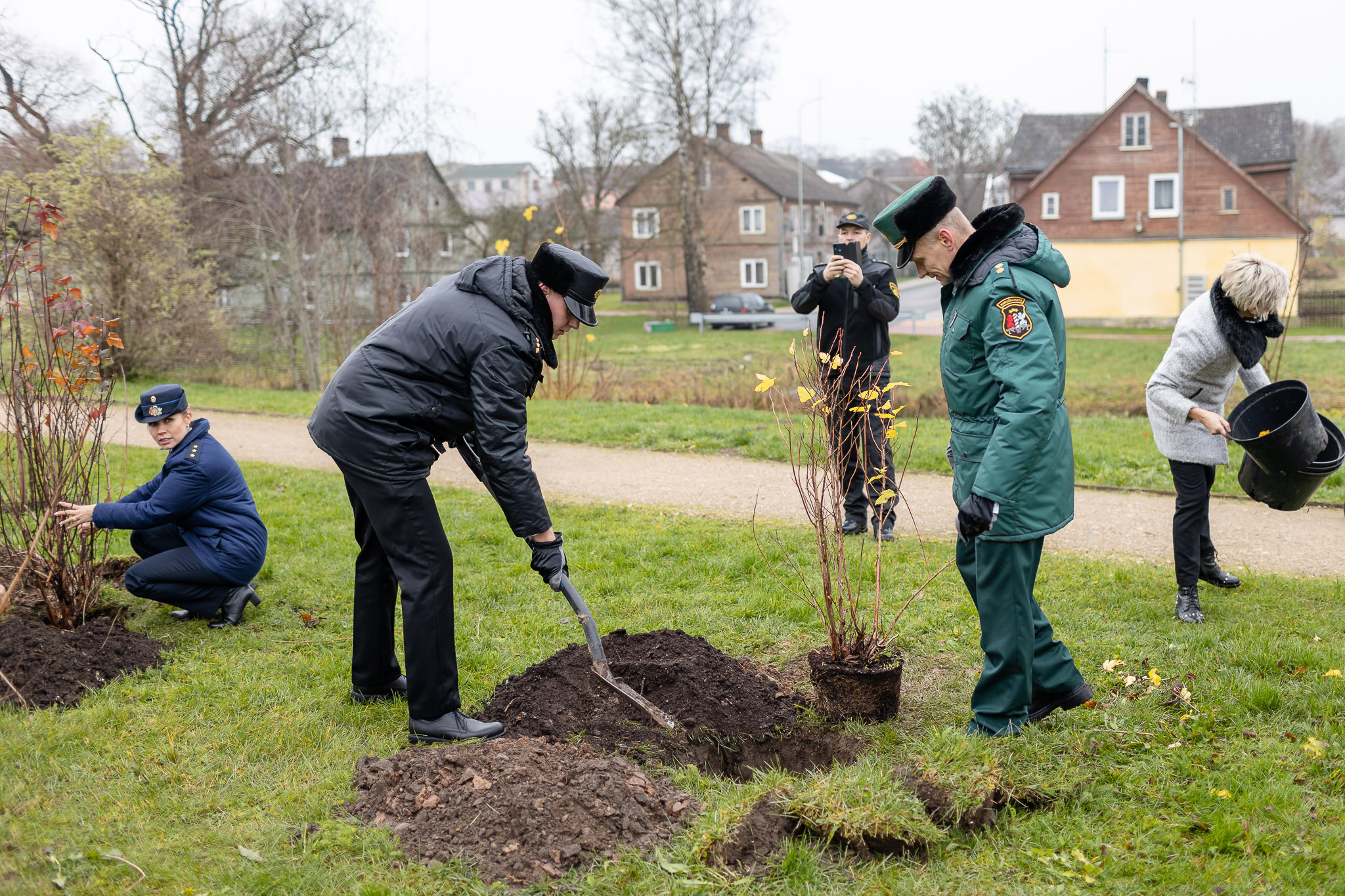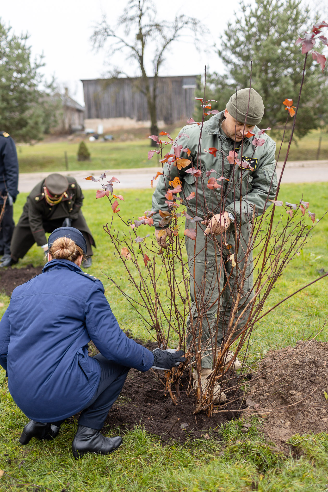 Pasākumā “Latviešu karavīrs laikmeta griežos” iestāda košumkrūmus nākotnei