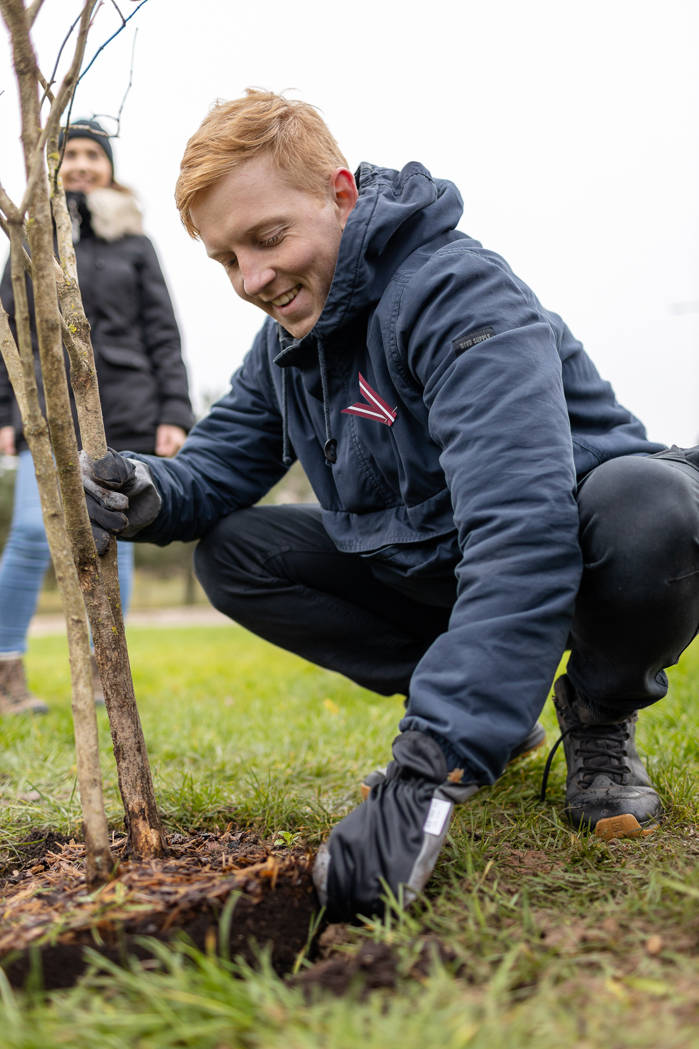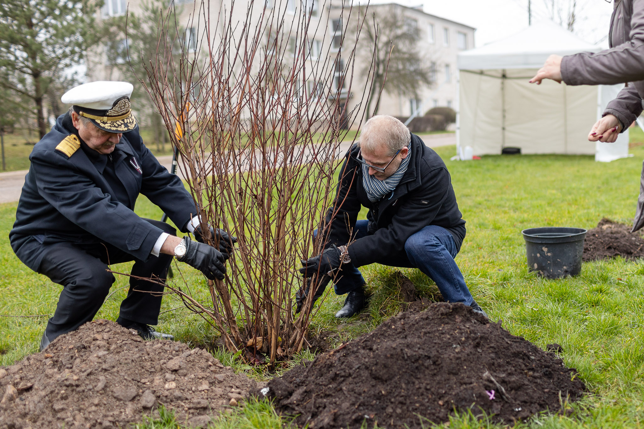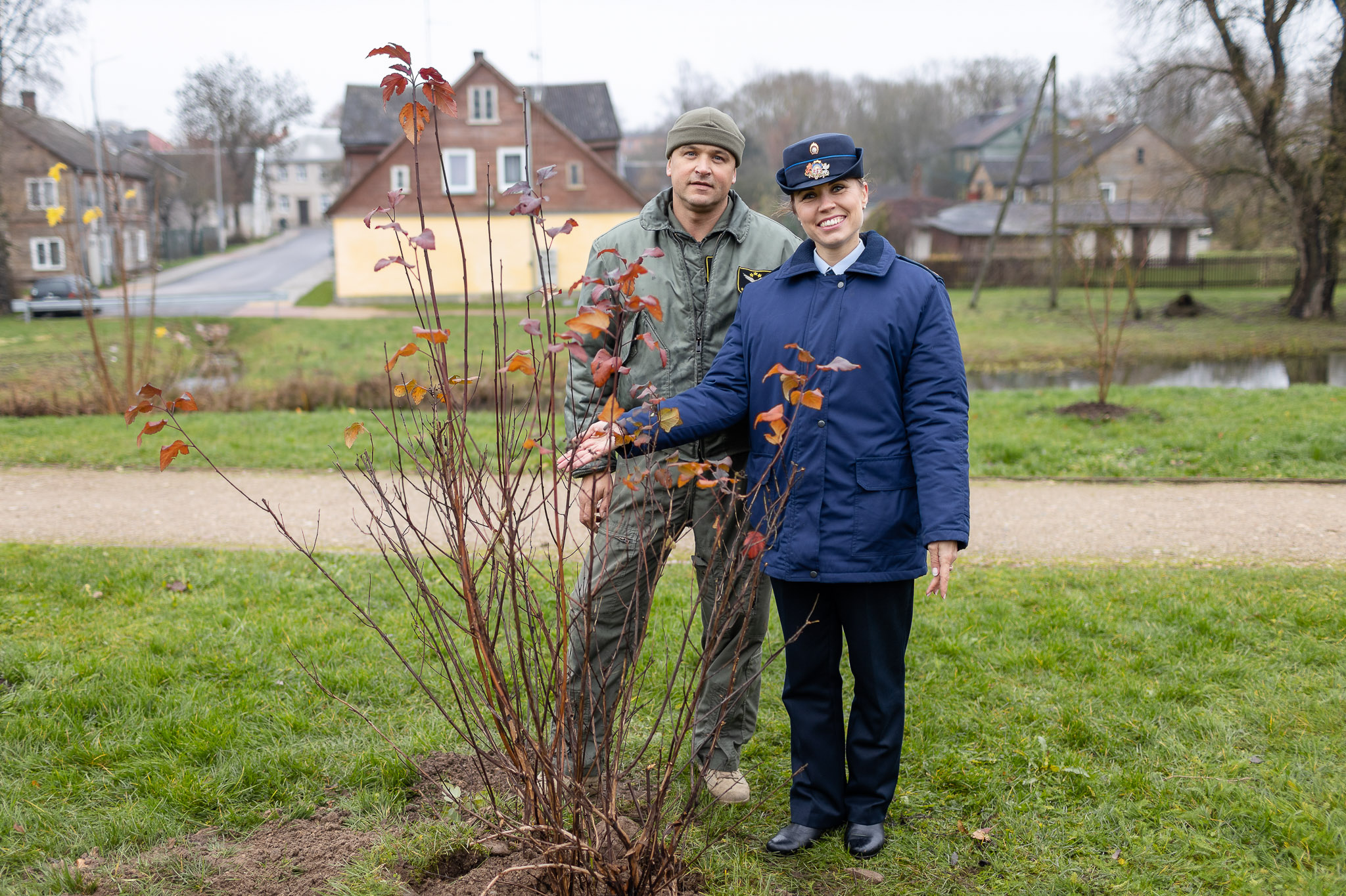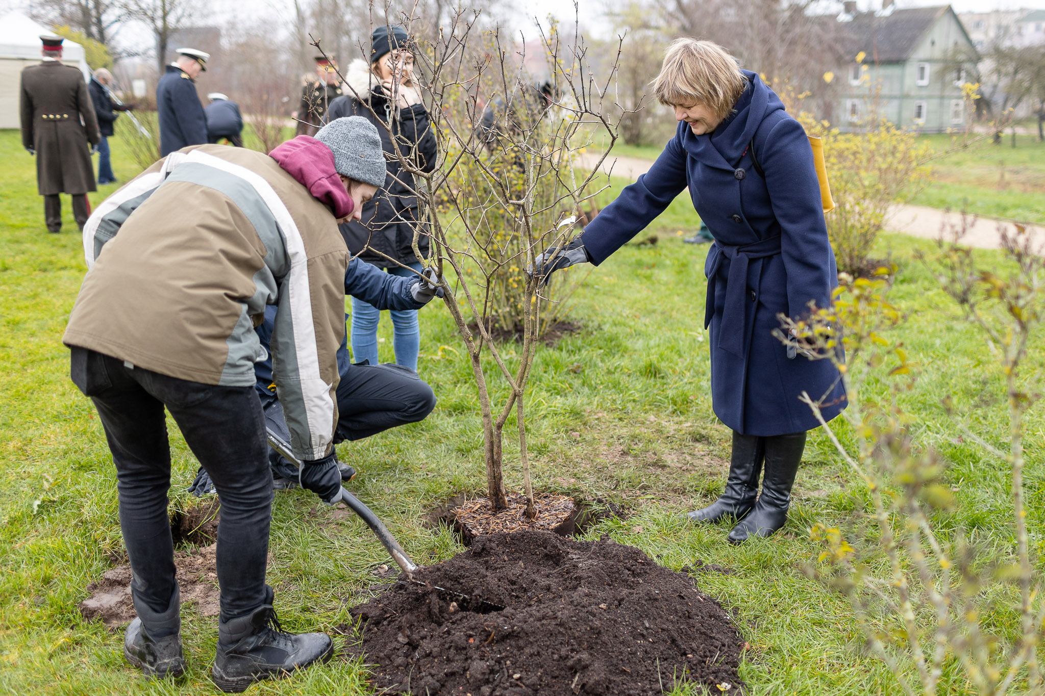 Pasākumā “Latviešu karavīrs laikmeta griežos” iestāda košumkrūmus nākotnei
