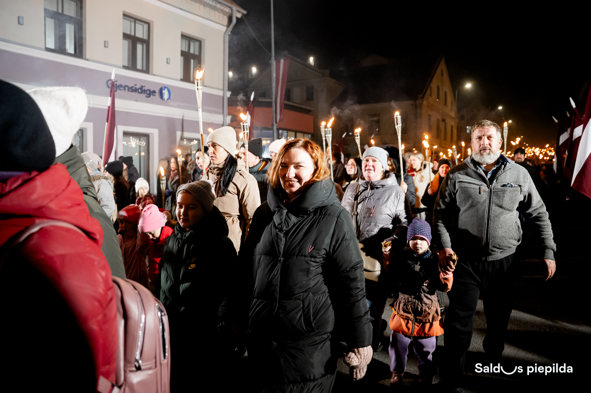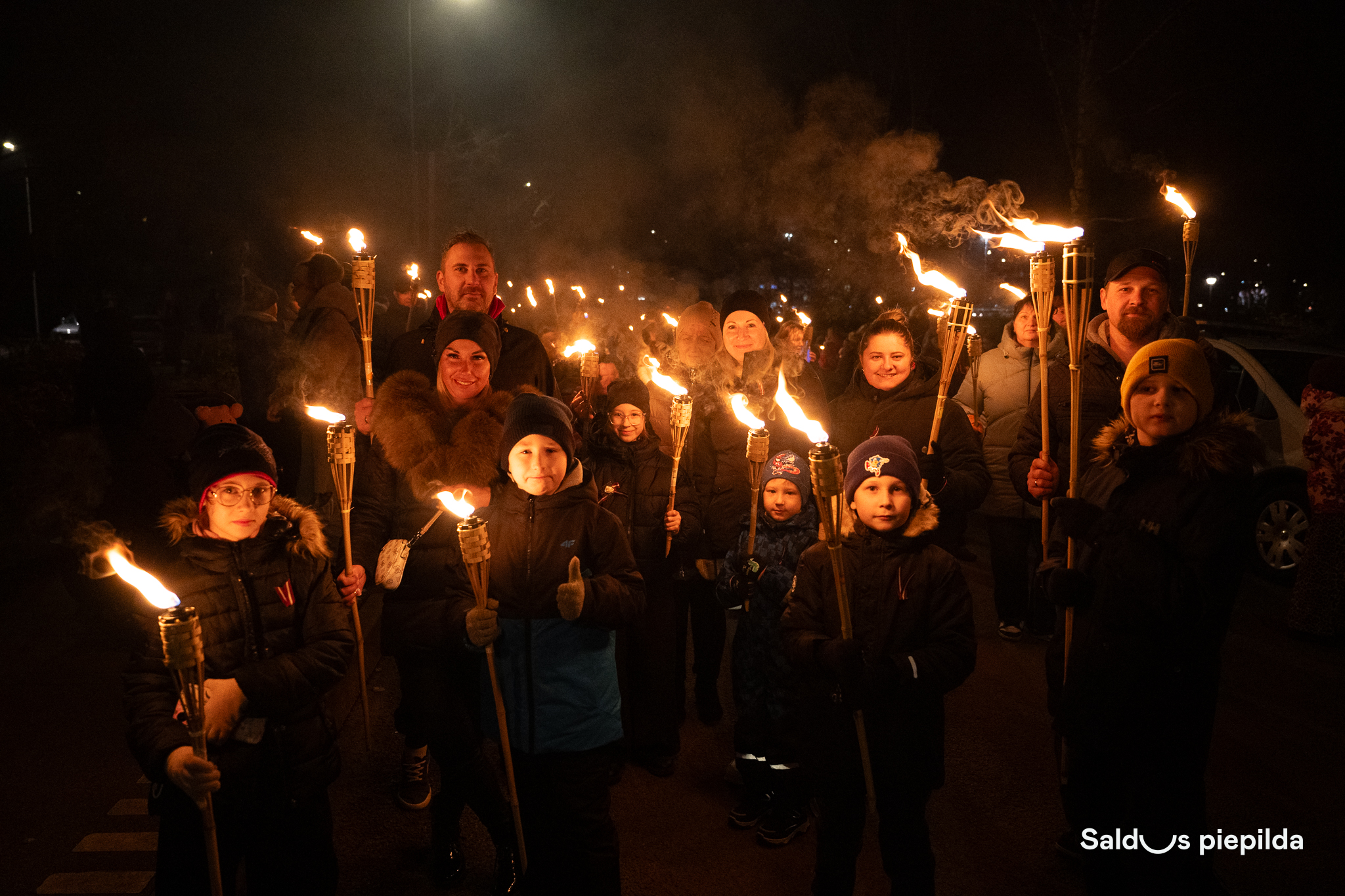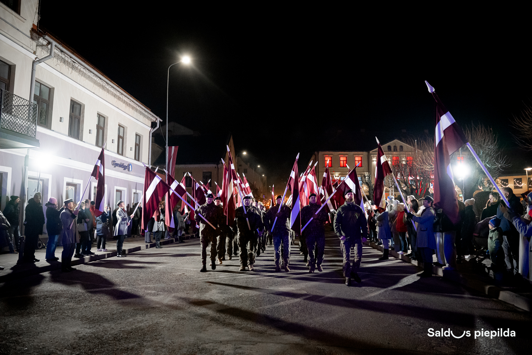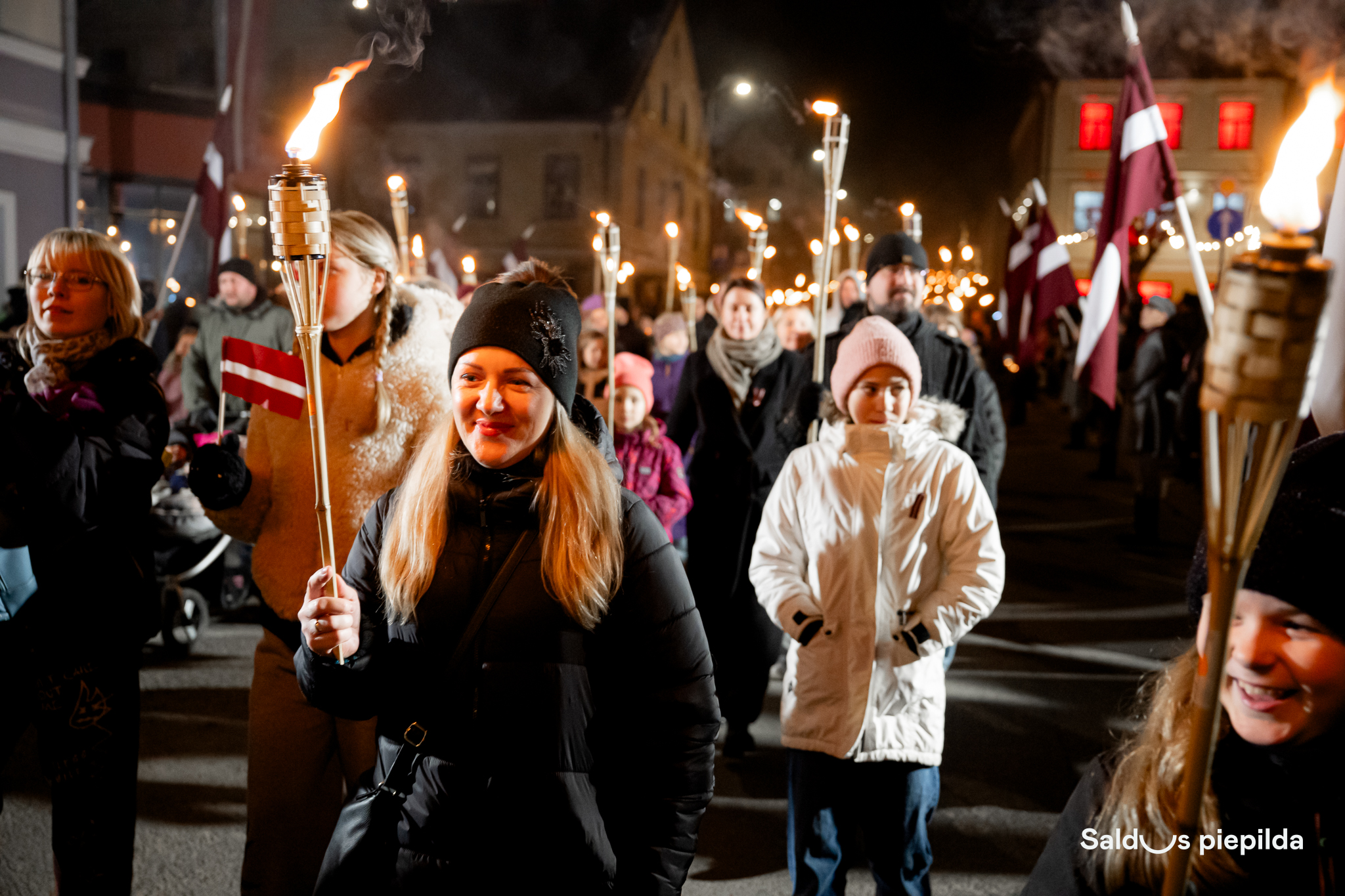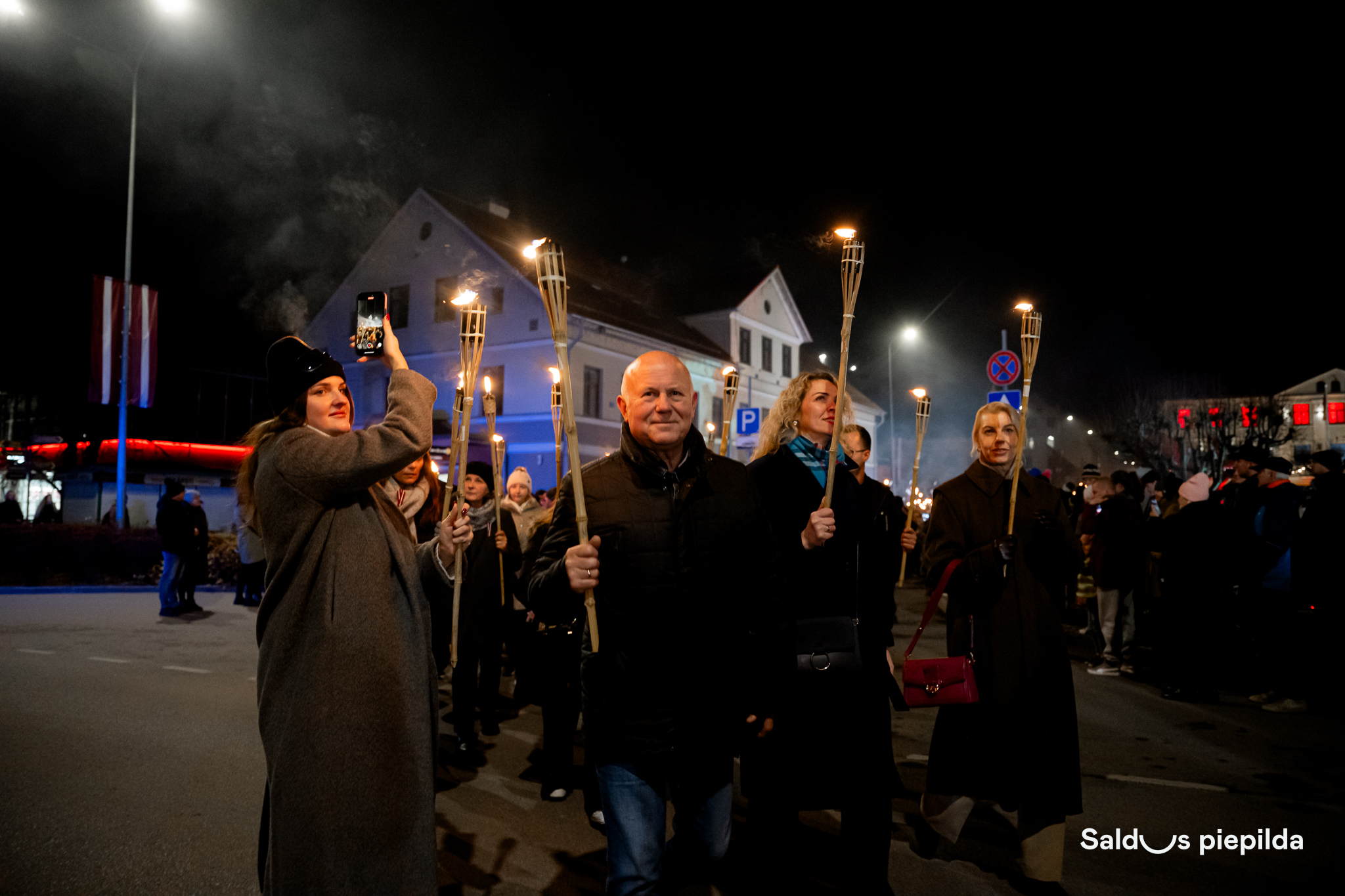 11. novembra vakarā Saldū valdīja vienota un patriotiska noskaņa, kad novadnieki un pilsētas viesi vienojās Lāpu gājienā. Tūkstošiem lāpu, sveču un stipru cilvēku devās cauri Saldus pilsētas ielām, radot īpašu gaismas un vienotības sajūtu. Šogad Lāpu gājienā piedalījās arī Saldus novada sadraudzības pilsētu delegācijas no Benficas (Portugāles) un Šilutes (Lietuvas).