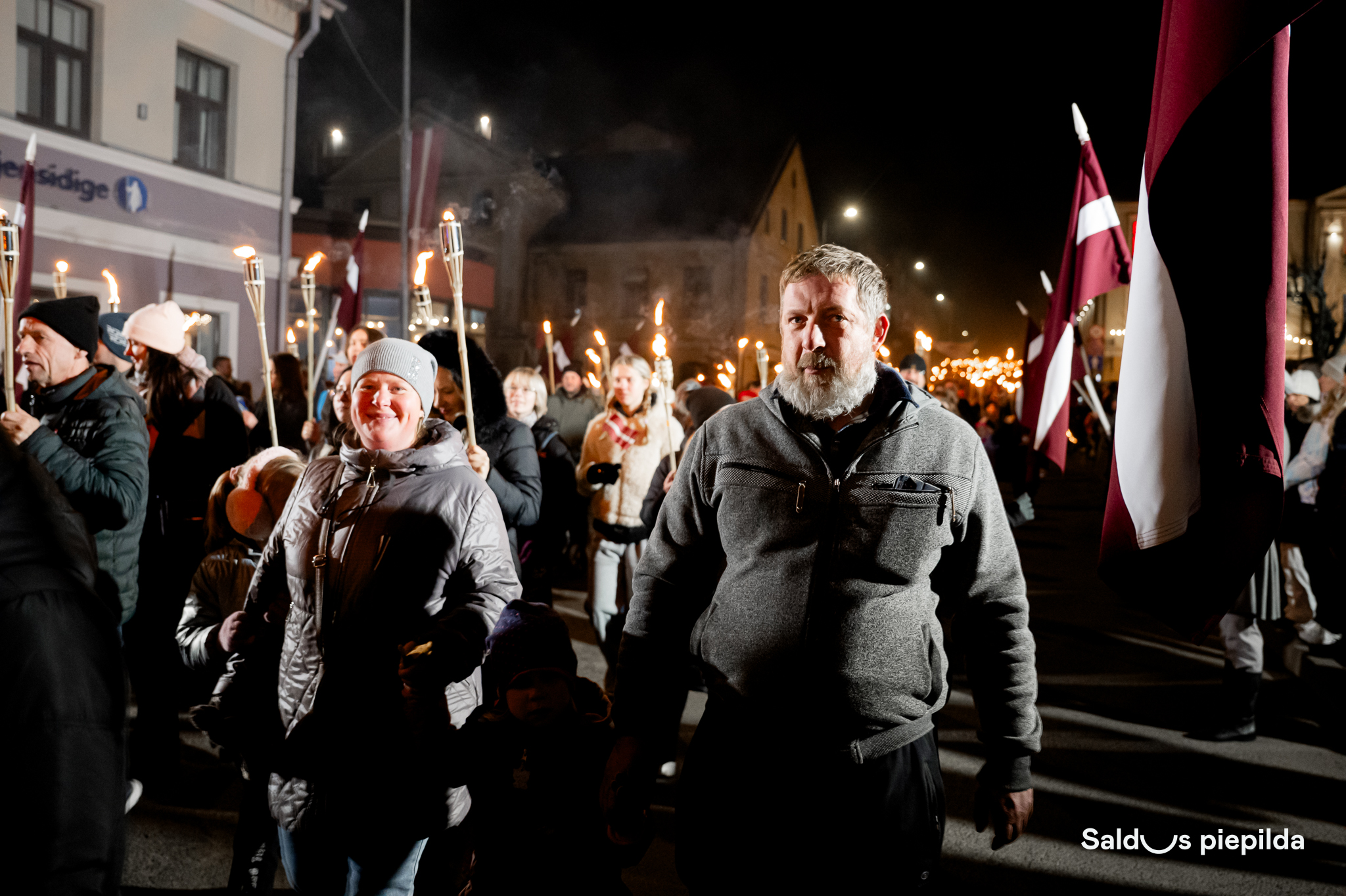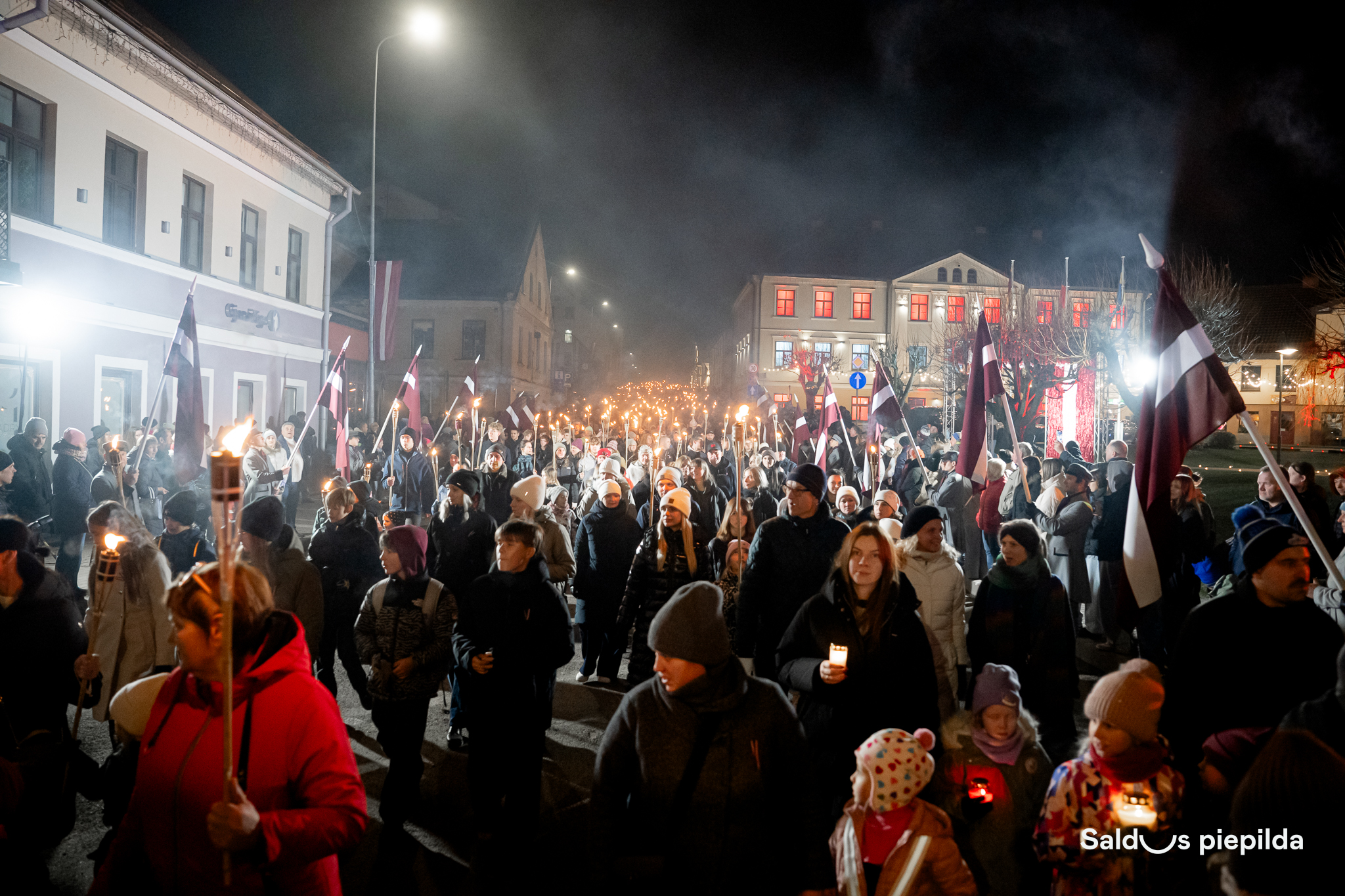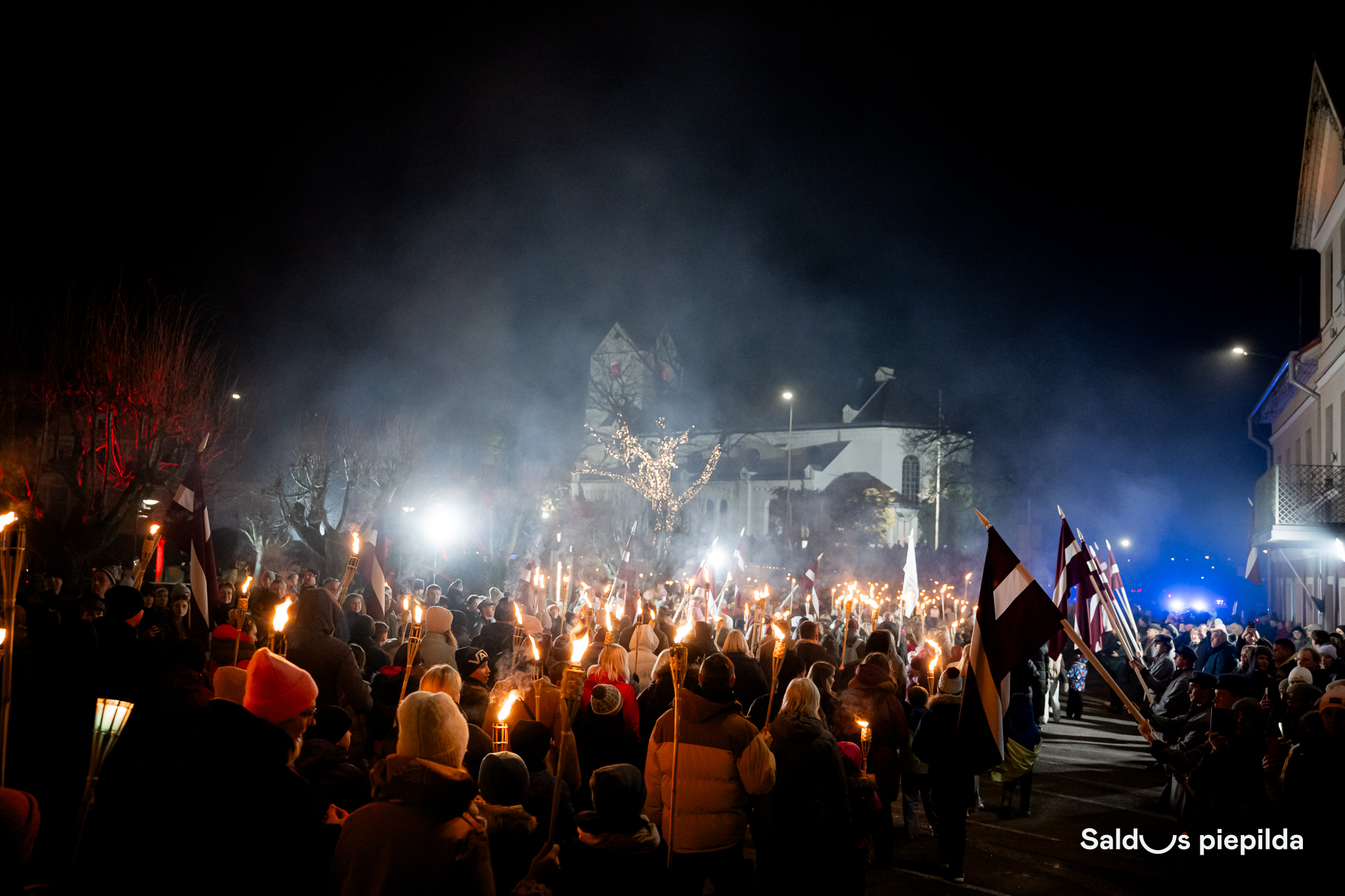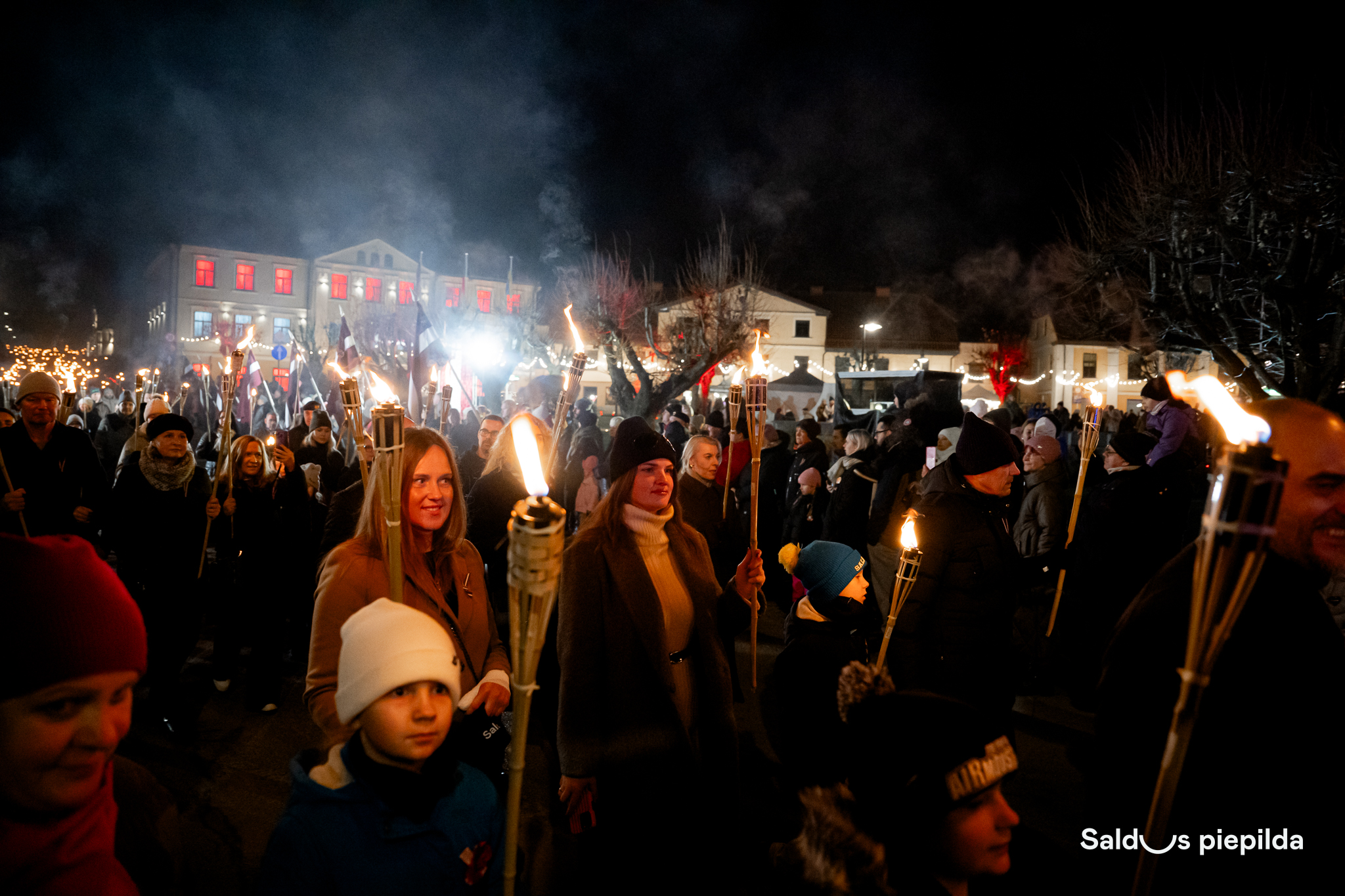 11. novembra vakarā Saldū valdīja vienota un patriotiska noskaņa, kad novadnieki un pilsētas viesi vienojās Lāpu gājienā. Tūkstošiem lāpu, sveču un stipru cilvēku devās cauri Saldus pilsētas ielām, radot īpašu gaismas un vienotības sajūtu. Šogad Lāpu gājienā piedalījās arī Saldus novada sadraudzības pilsētu delegācijas no Benficas (Portugāles) un Šilutes (Lietuvas).