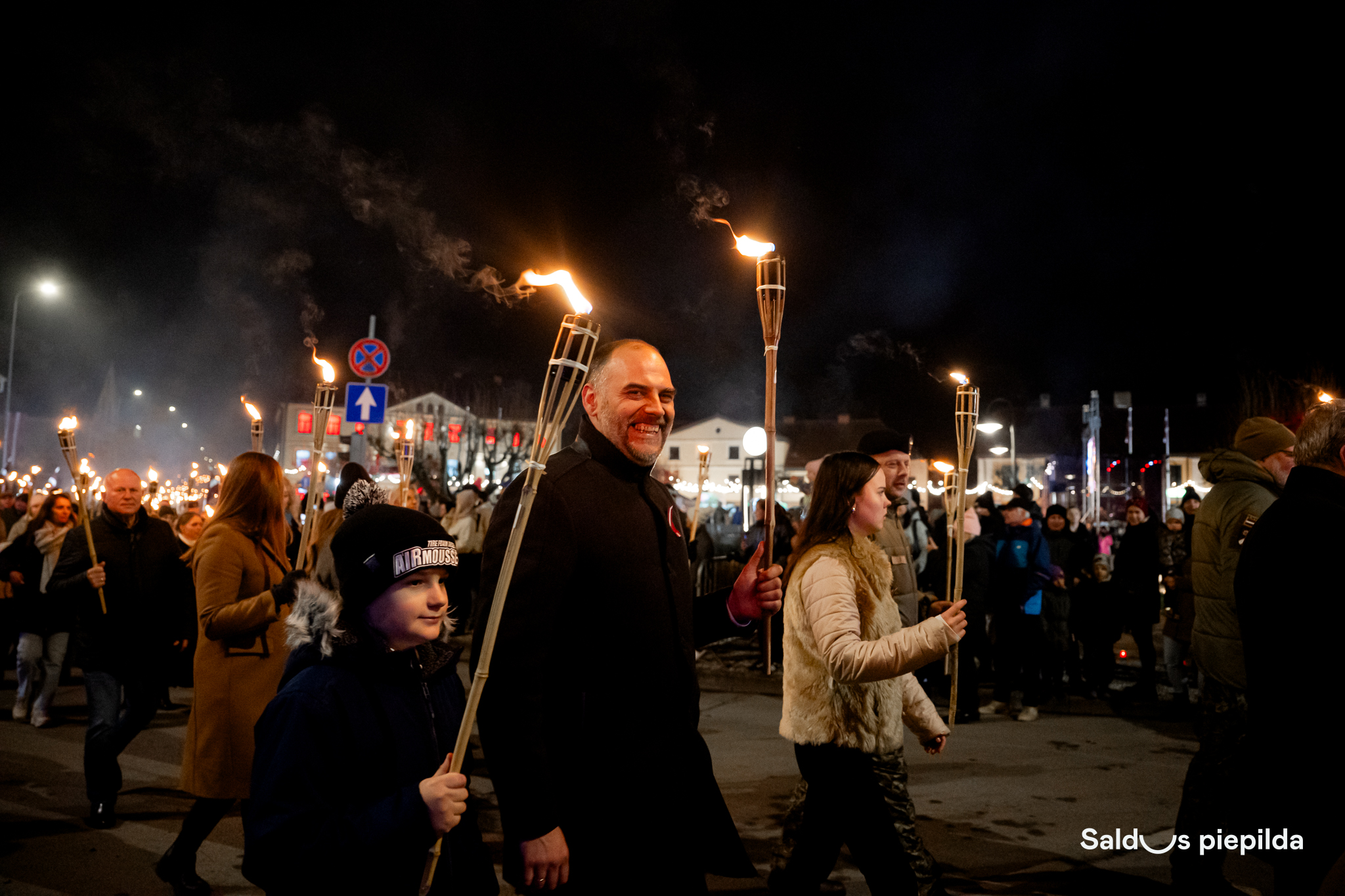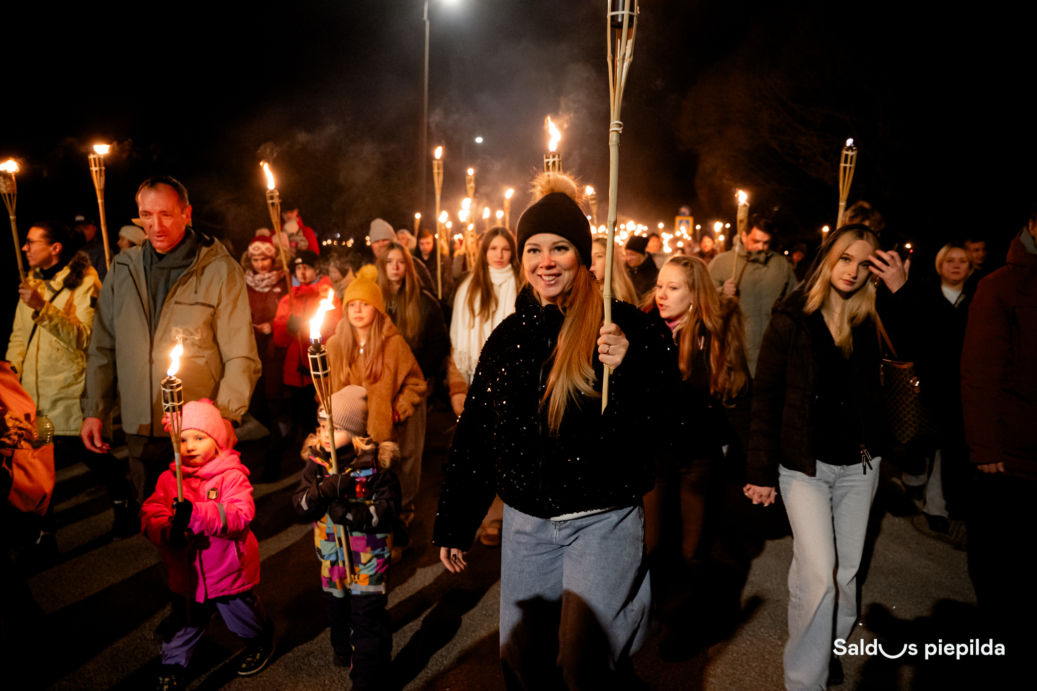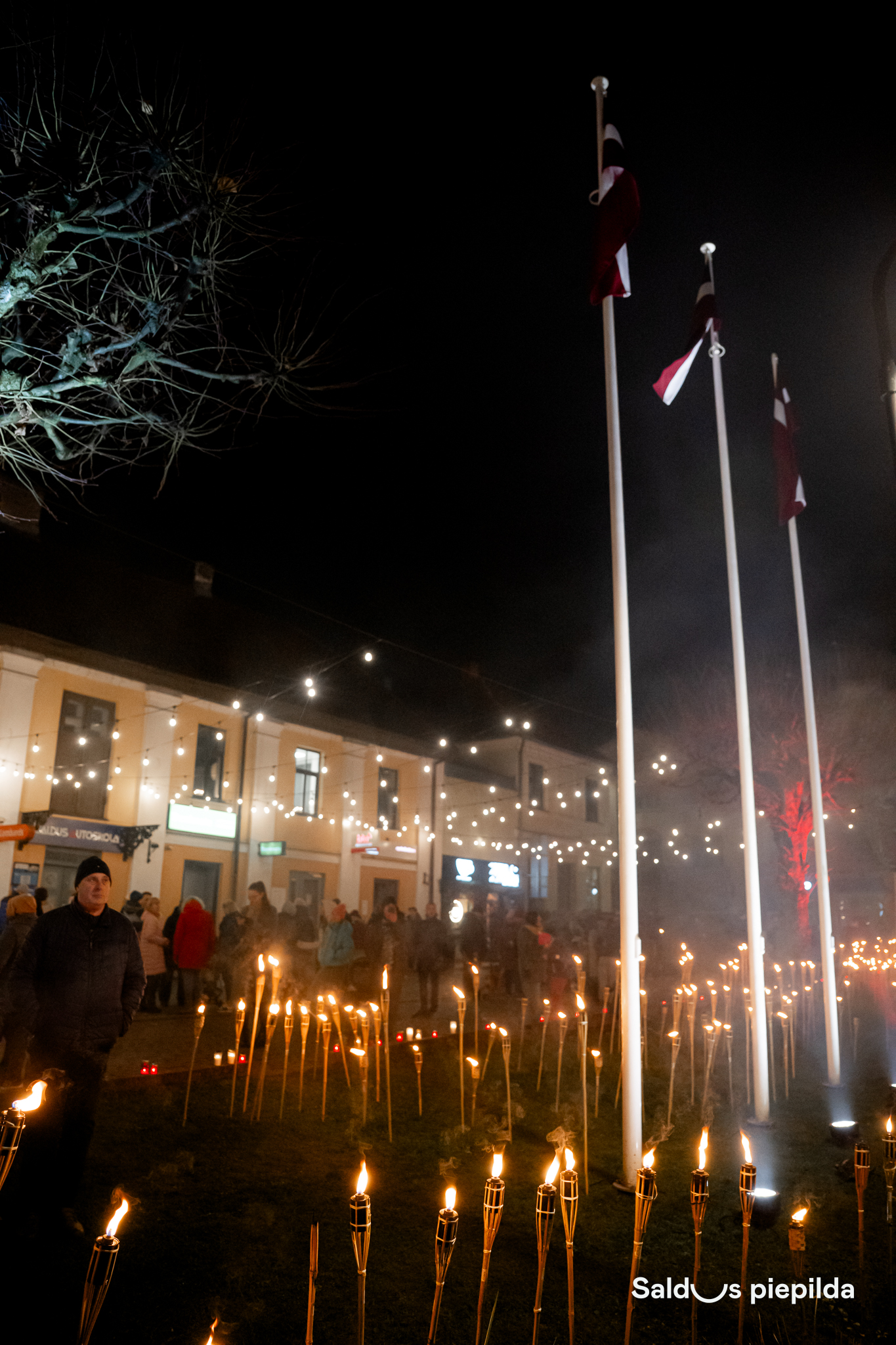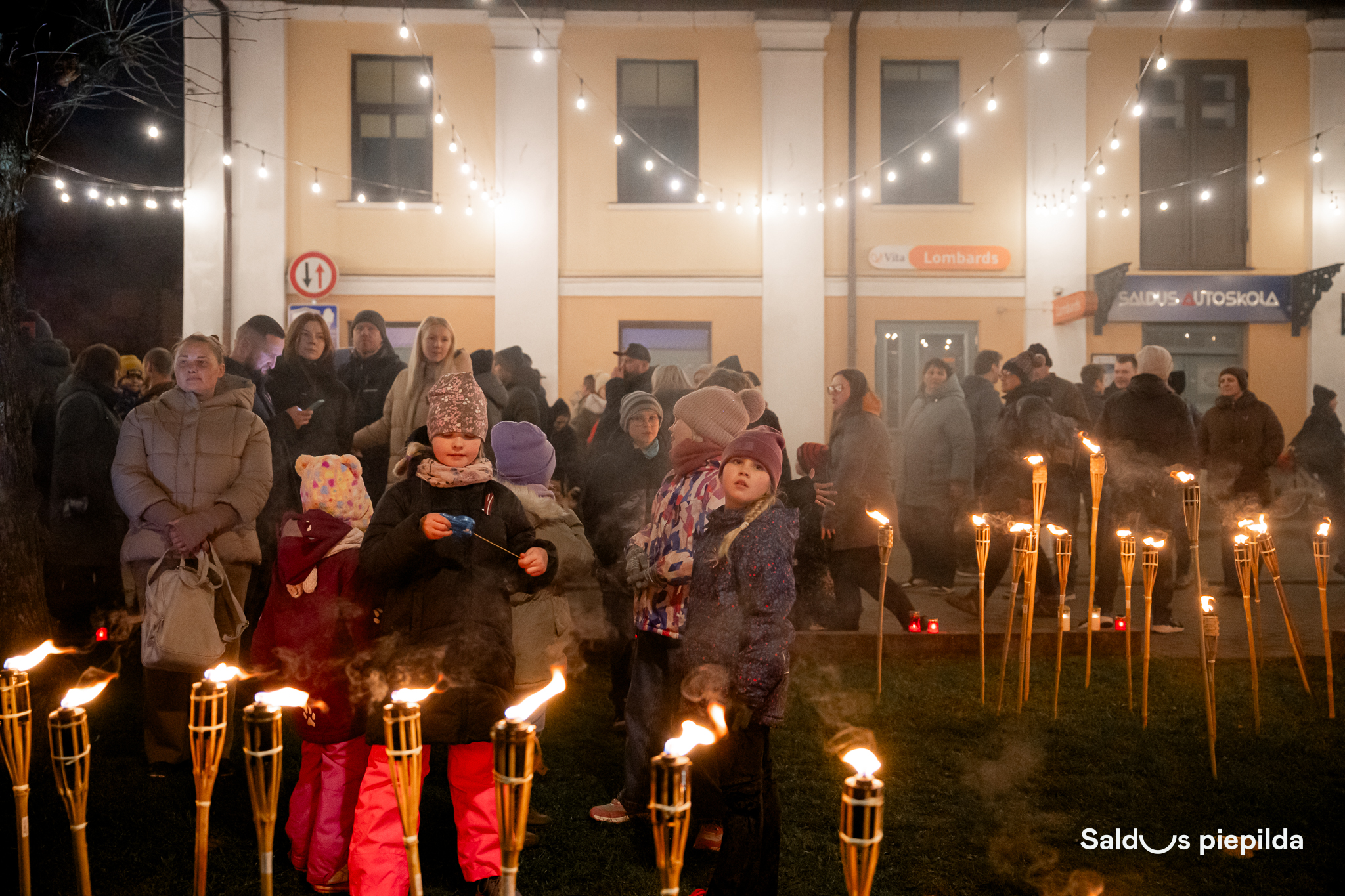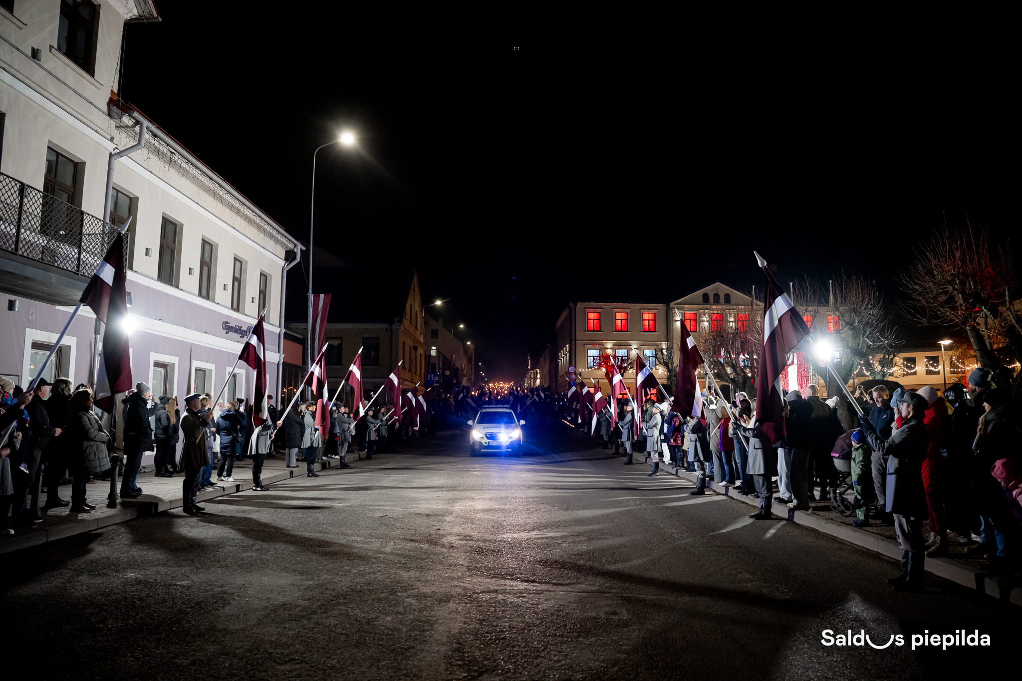 11. novembra vakarā Saldū valdīja vienota un patriotiska noskaņa, kad novadnieki un pilsētas viesi vienojās Lāpu gājienā. Tūkstošiem lāpu, sveču un stipru cilvēku devās cauri Saldus pilsētas ielām, radot īpašu gaismas un vienotības sajūtu. Šogad Lāpu gājienā piedalījās arī Saldus novada sadraudzības pilsētu delegācijas no Benficas (Portugāles) un Šilutes (Lietuvas).