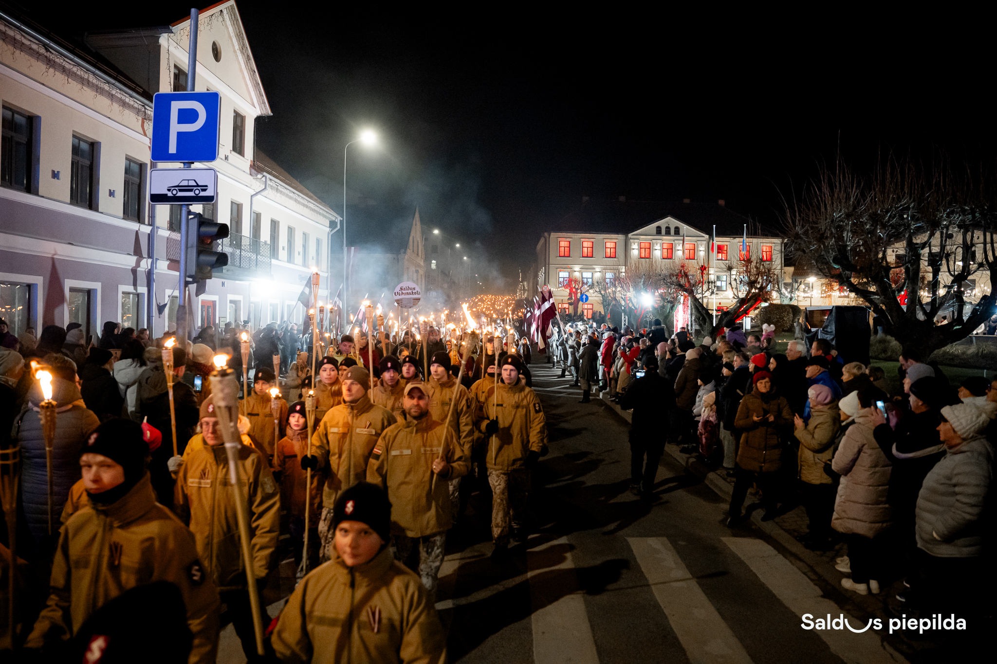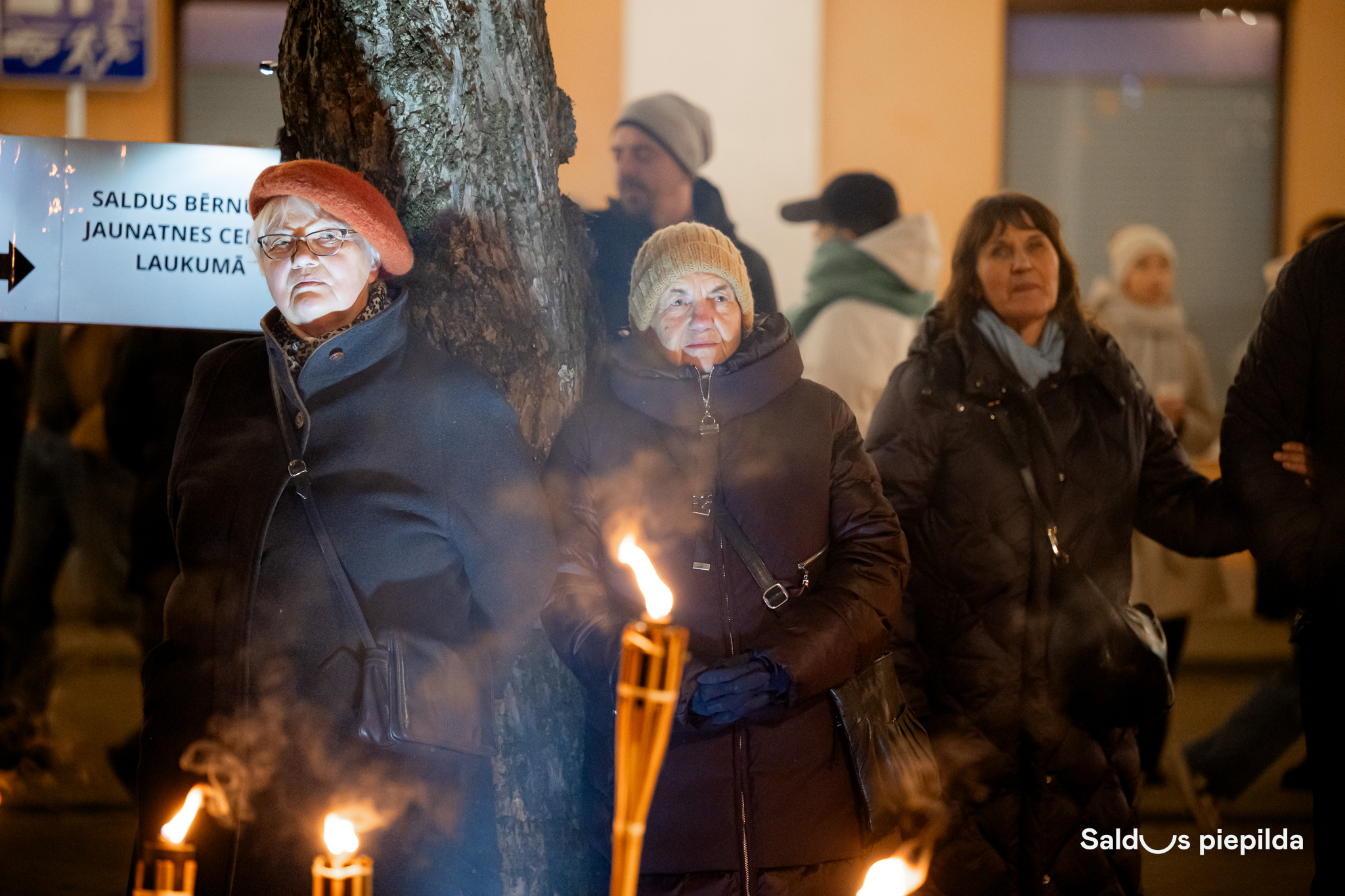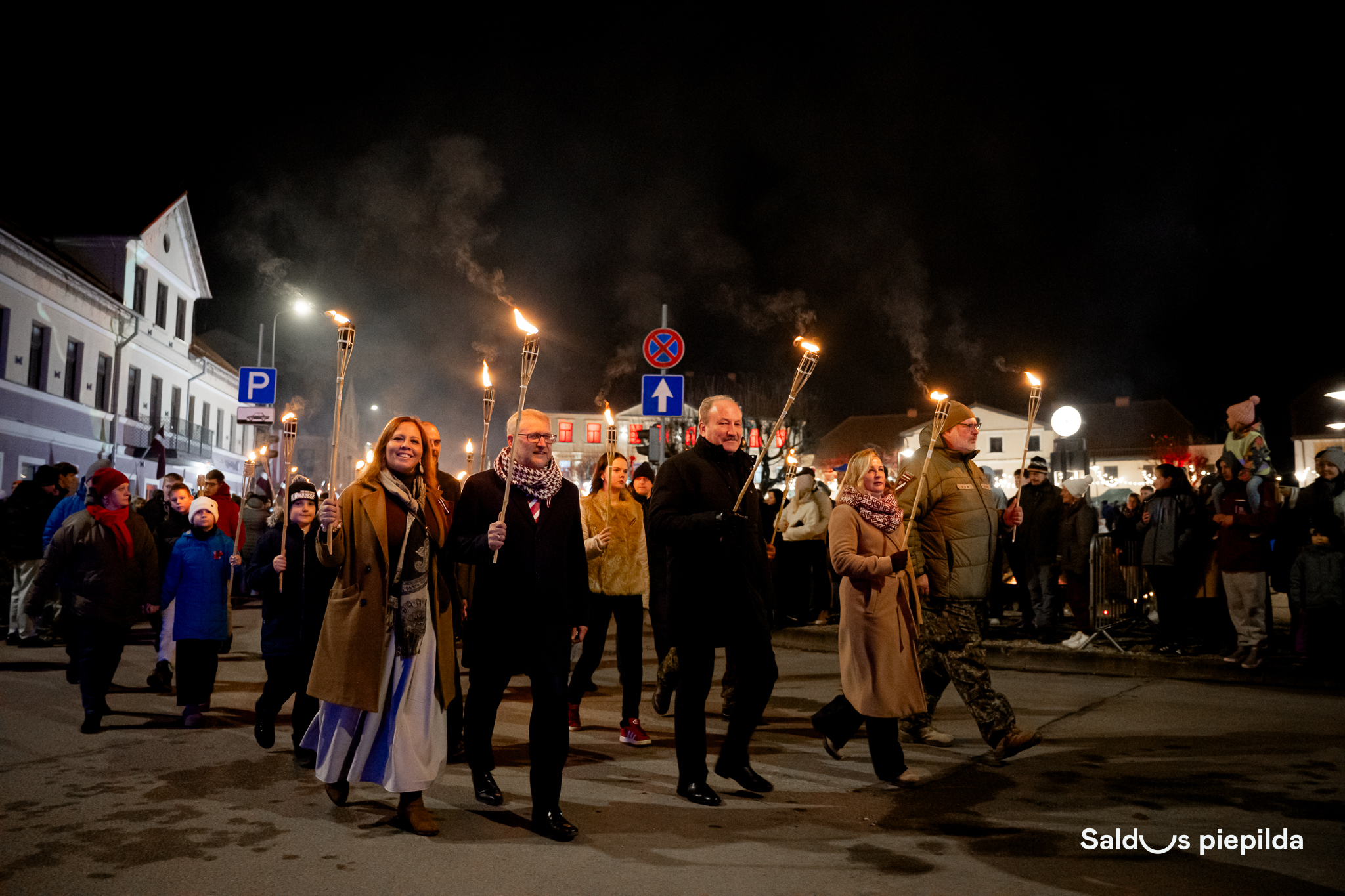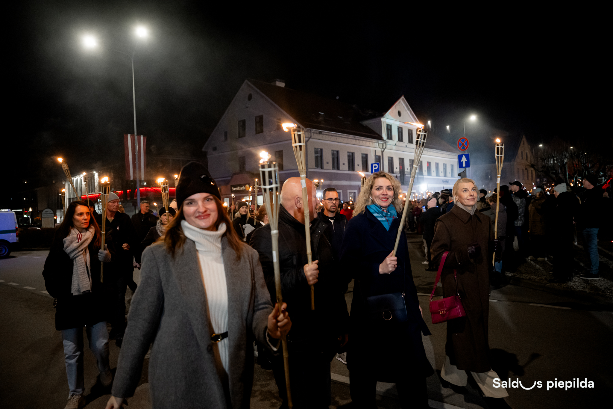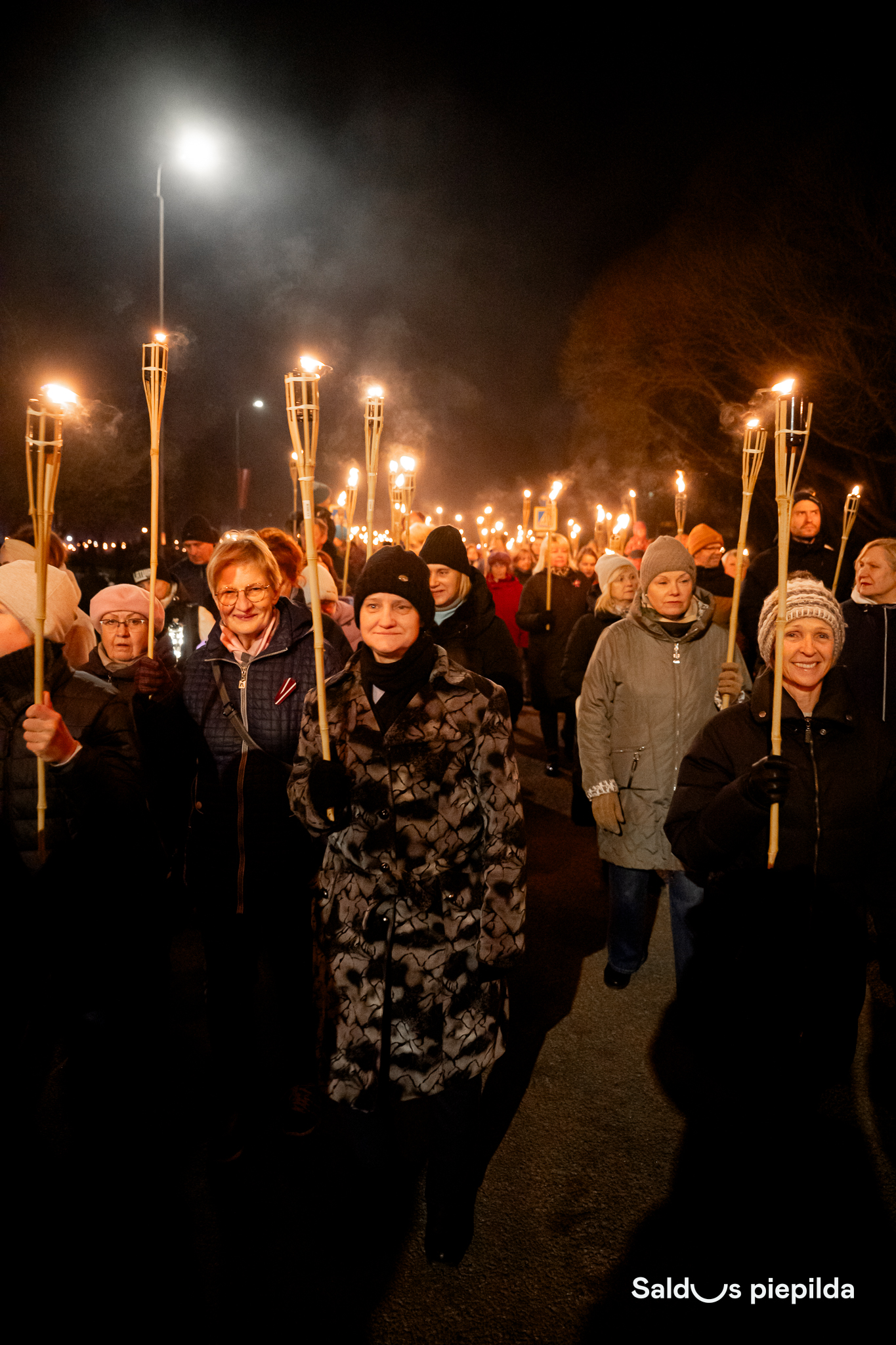 11. novembra vakarā Saldū valdīja vienota un patriotiska noskaņa, kad novadnieki un pilsētas viesi vienojās Lāpu gājienā. Tūkstošiem lāpu, sveču un stipru cilvēku devās cauri Saldus pilsētas ielām, radot īpašu gaismas un vienotības sajūtu. Šogad Lāpu gājienā piedalījās arī Saldus novada sadraudzības pilsētu delegācijas no Benficas (Portugāles) un Šilutes (Lietuvas).