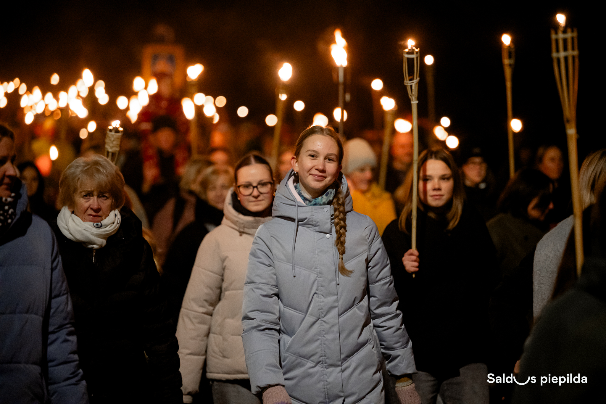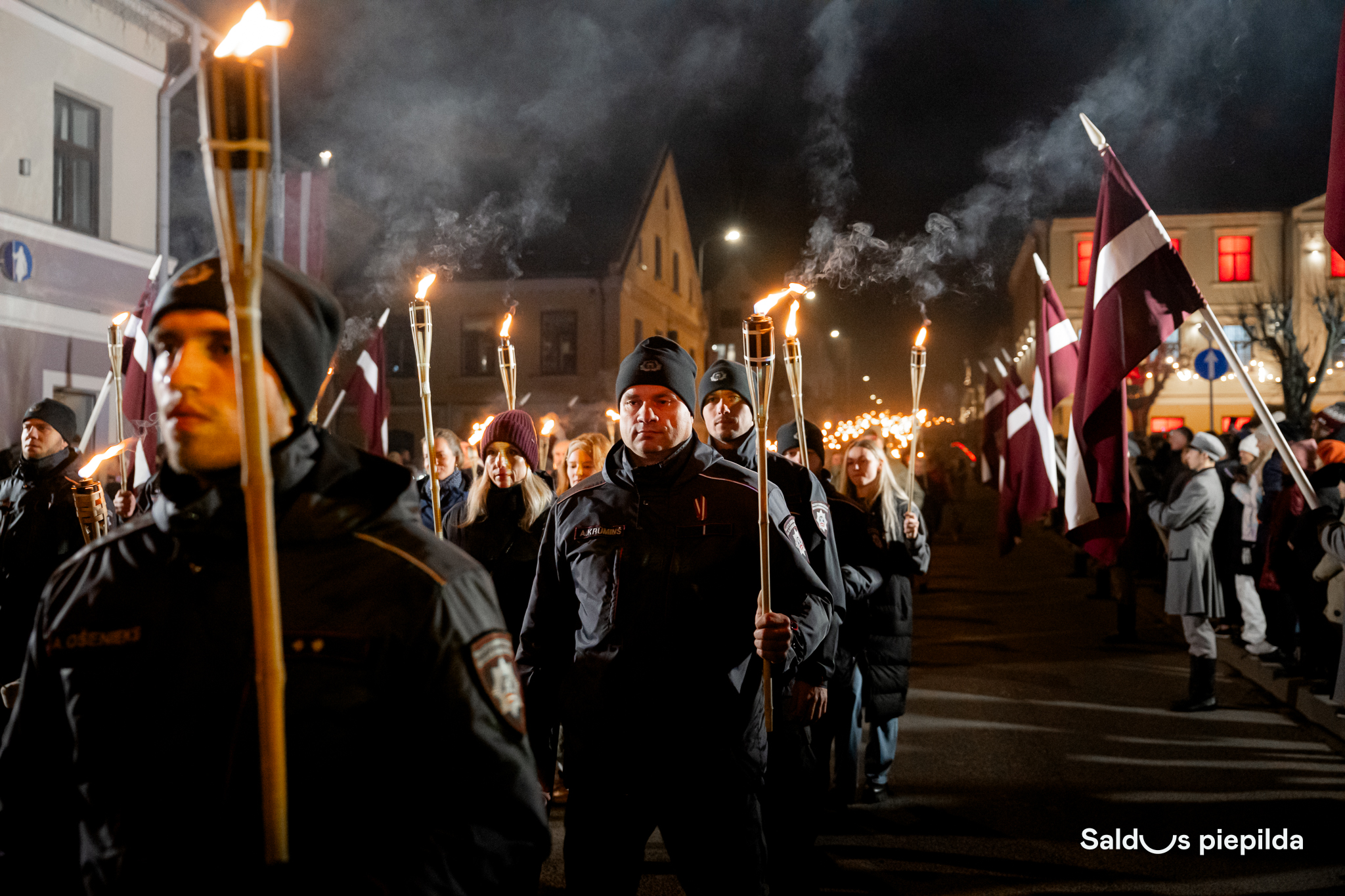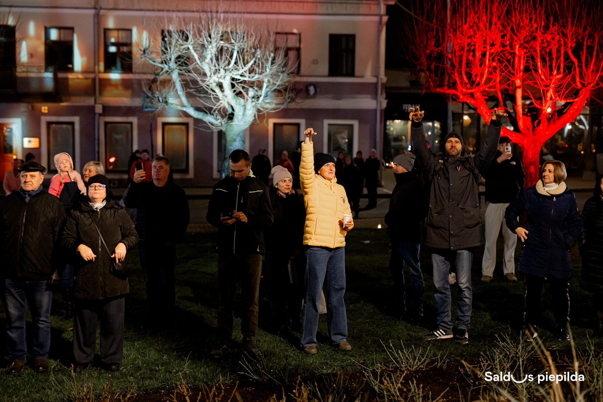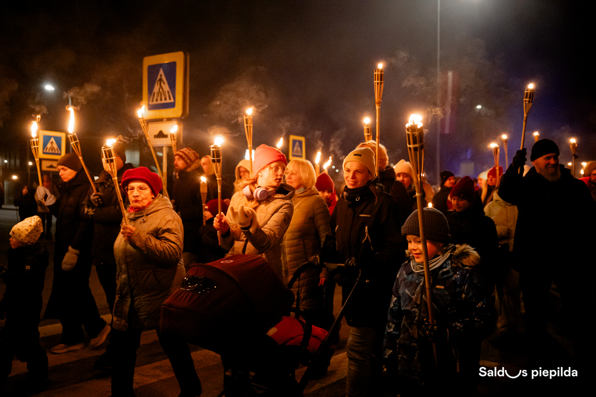 11. novembra vakarā Saldū valdīja vienota un patriotiska noskaņa, kad novadnieki un pilsētas viesi vienojās Lāpu gājienā. Tūkstošiem lāpu, sveču un stipru cilvēku devās cauri Saldus pilsētas ielām, radot īpašu gaismas un vienotības sajūtu. Šogad Lāpu gājienā piedalījās arī Saldus novada sadraudzības pilsētu delegācijas no Benficas (Portugāles) un Šilutes (Lietuvas).