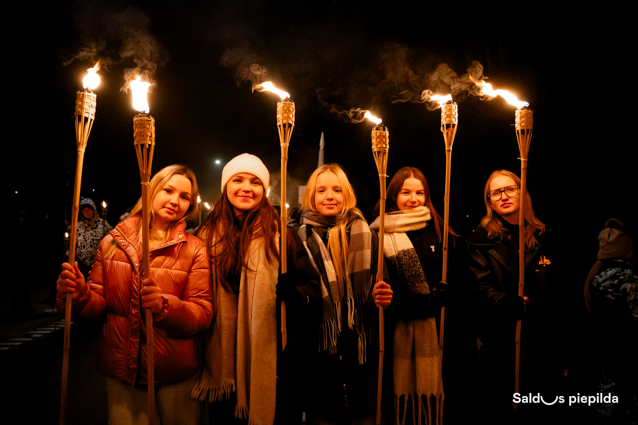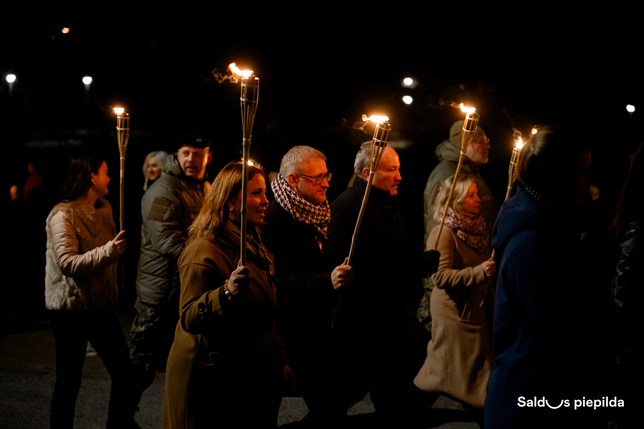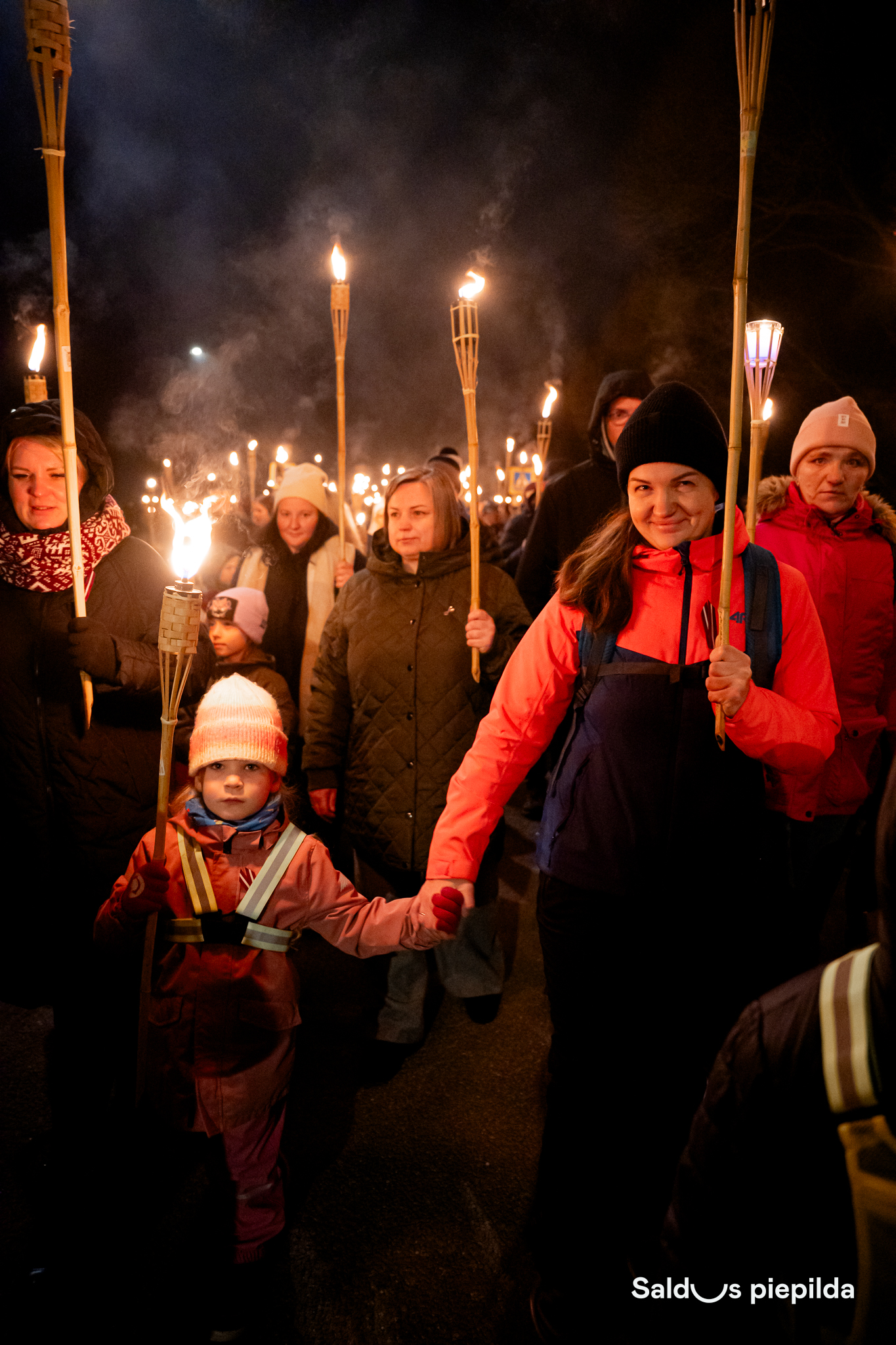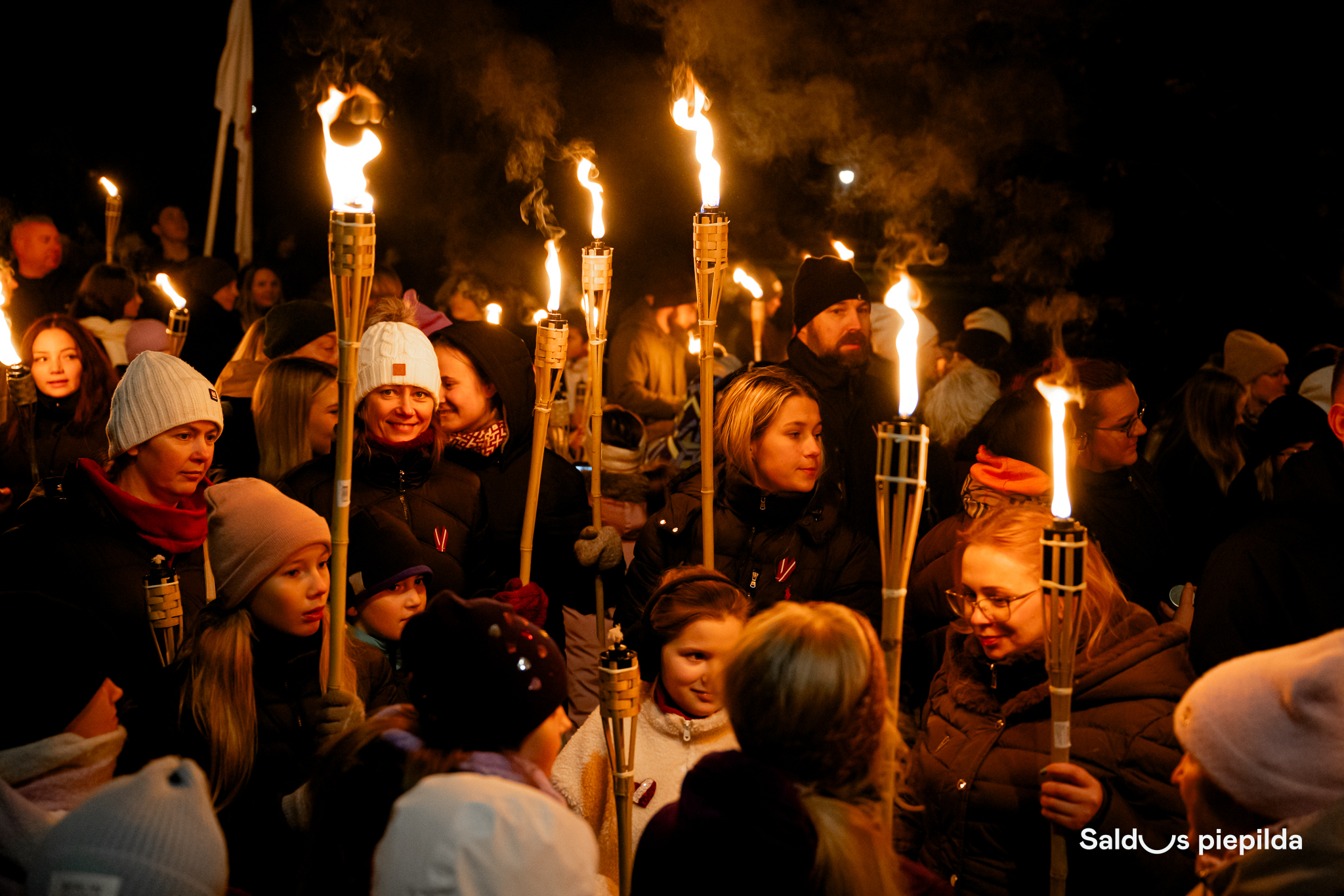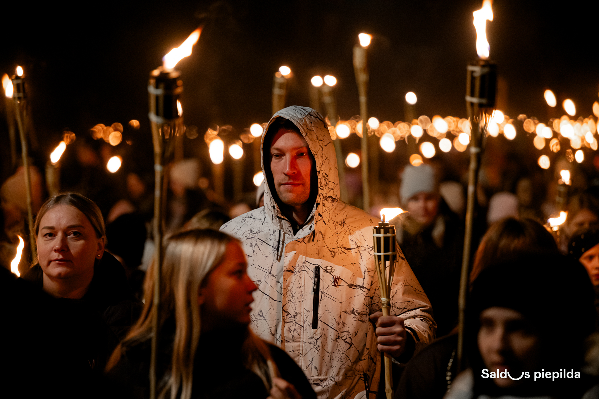 11. novembra vakarā Saldū valdīja vienota un patriotiska noskaņa, kad novadnieki un pilsētas viesi vienojās Lāpu gājienā. Tūkstošiem lāpu, sveču un stipru cilvēku devās cauri Saldus pilsētas ielām, radot īpašu gaismas un vienotības sajūtu. Šogad Lāpu gājienā piedalījās arī Saldus novada sadraudzības pilsētu delegācijas no Benficas (Portugāles) un Šilutes (Lietuvas).