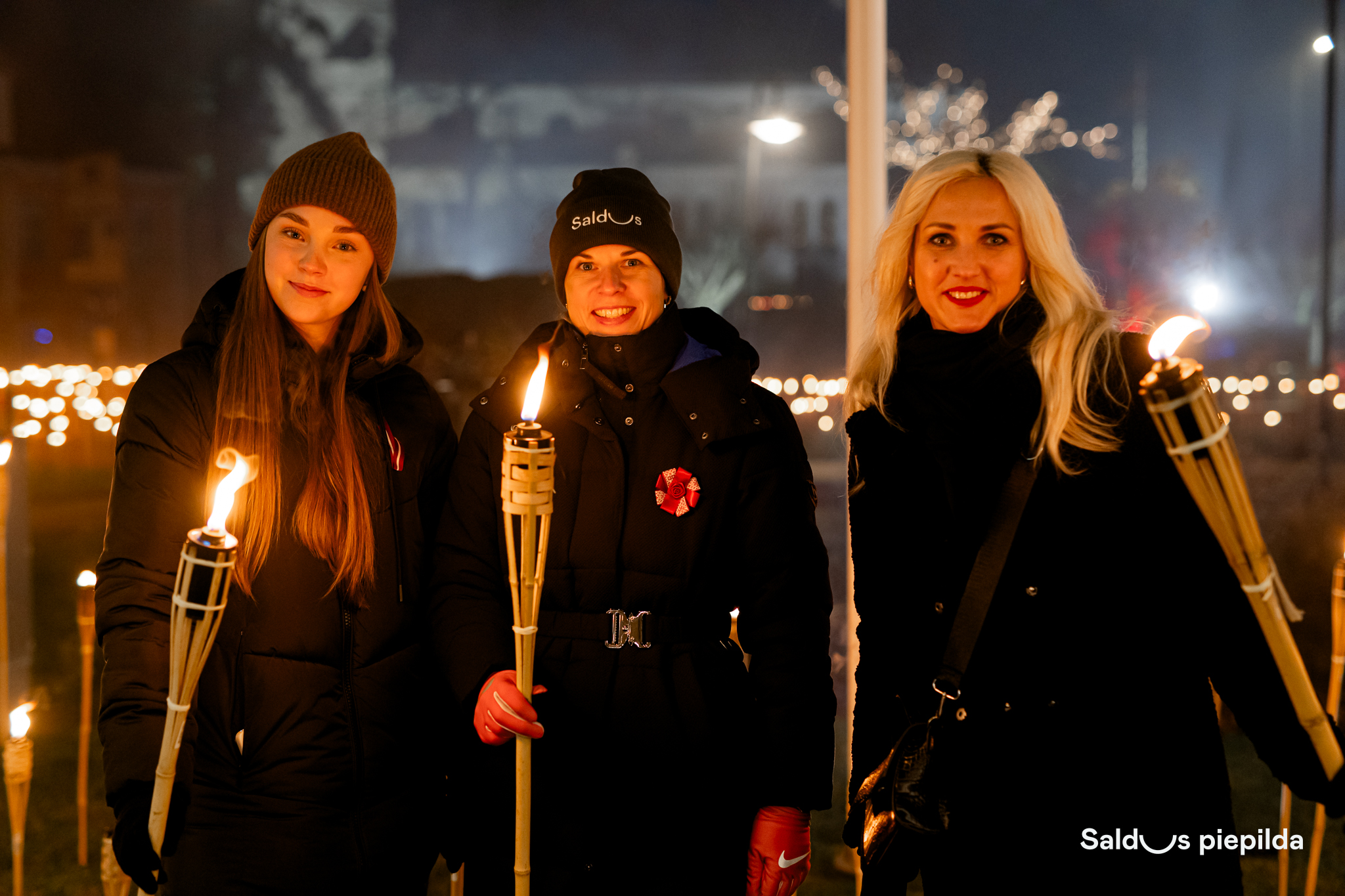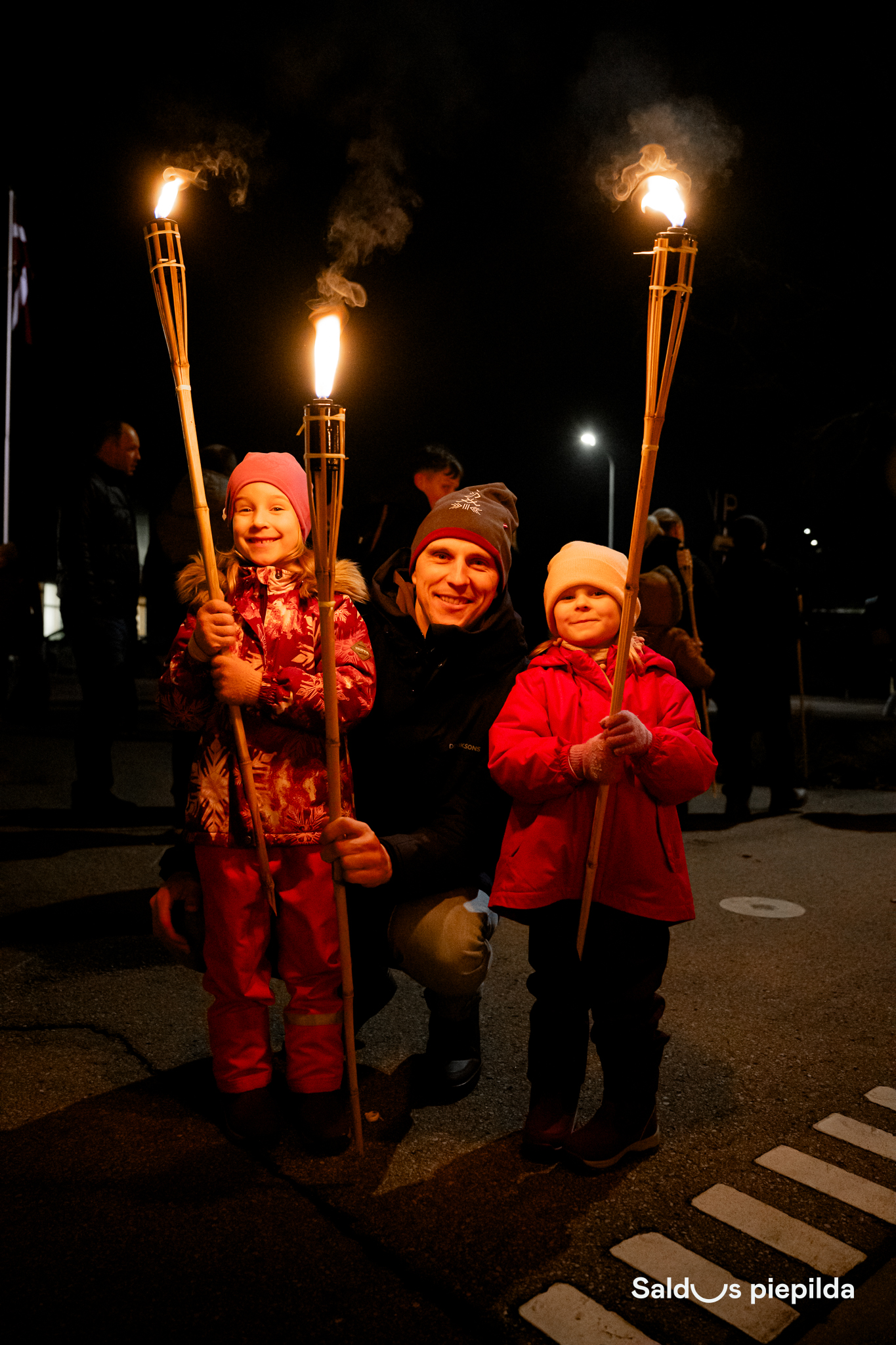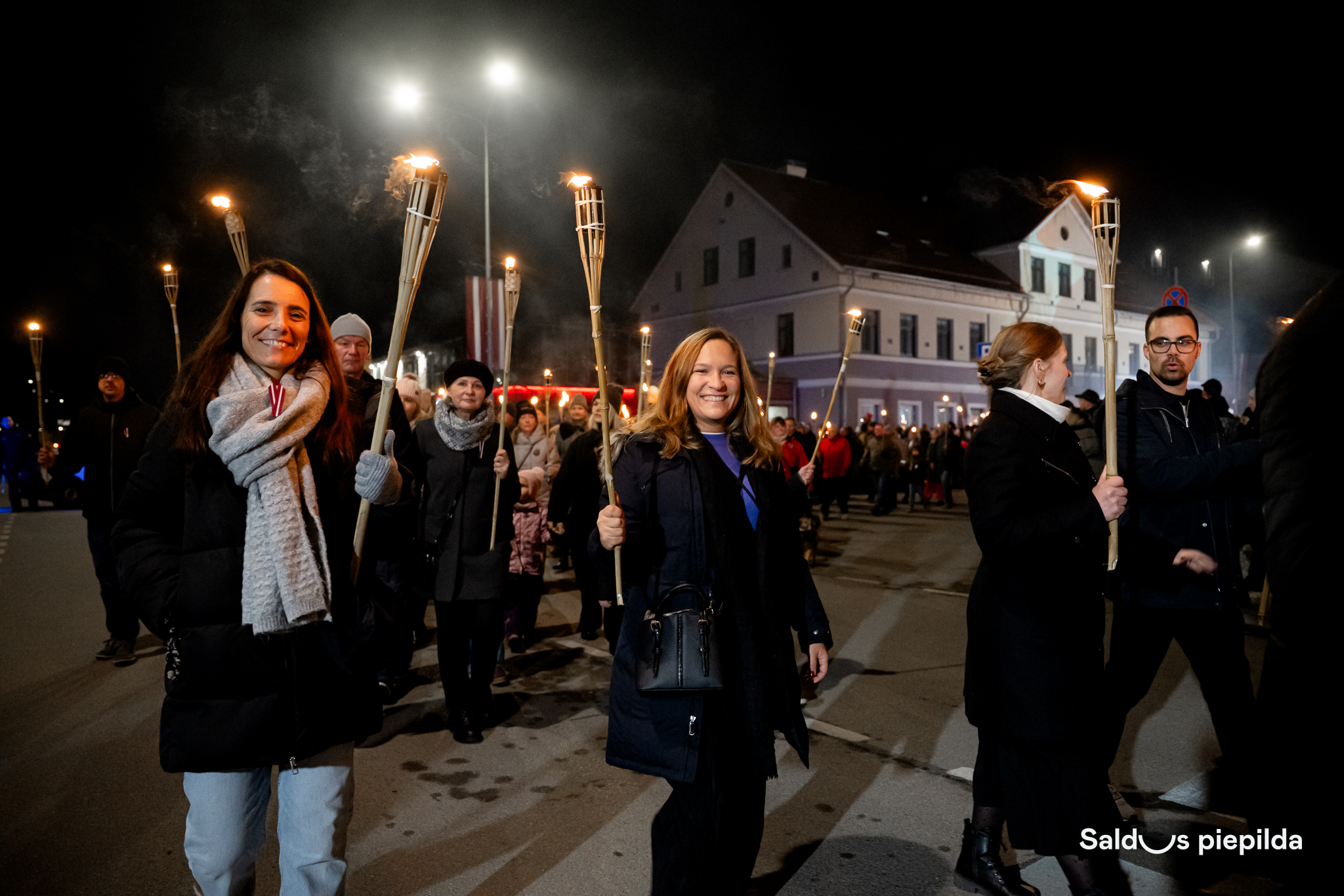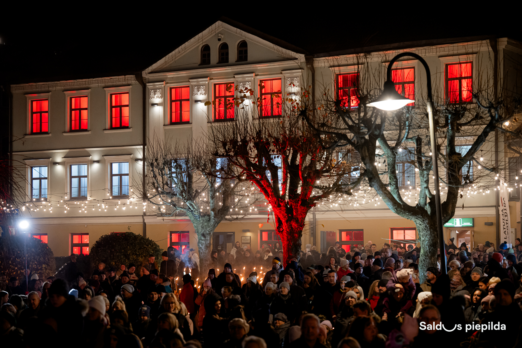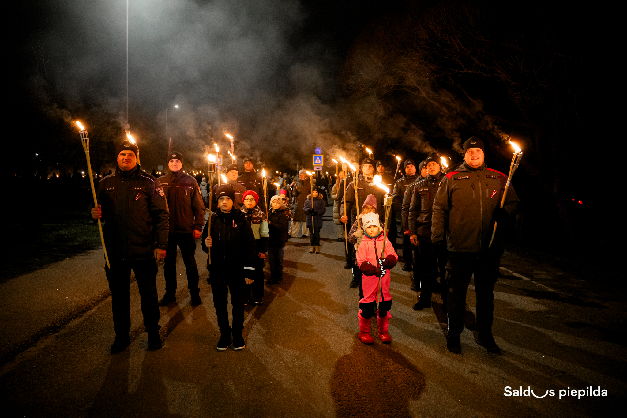 11. novembra vakarā Saldū valdīja vienota un patriotiska noskaņa, kad novadnieki un pilsētas viesi vienojās Lāpu gājienā. Tūkstošiem lāpu, sveču un stipru cilvēku devās cauri Saldus pilsētas ielām, radot īpašu gaismas un vienotības sajūtu. Šogad Lāpu gājienā piedalījās arī Saldus novada sadraudzības pilsētu delegācijas no Benficas (Portugāles) un Šilutes (Lietuvas).