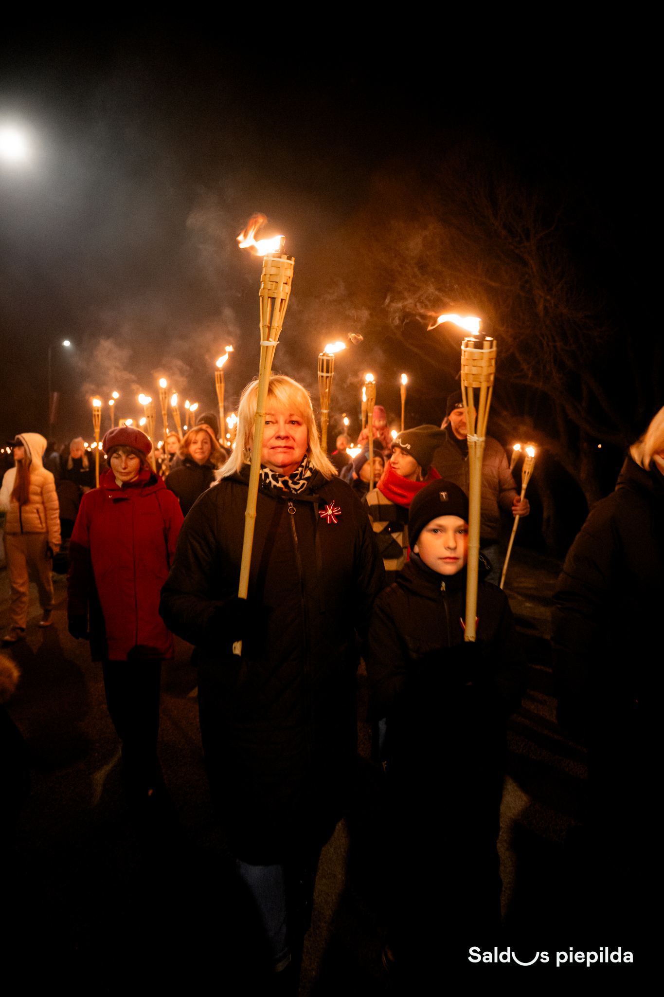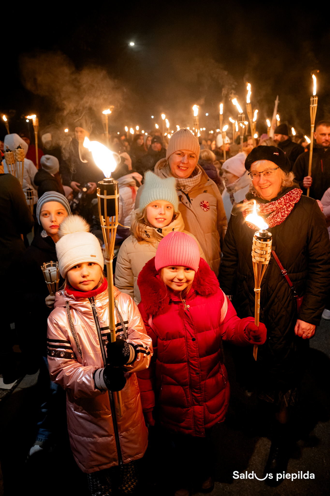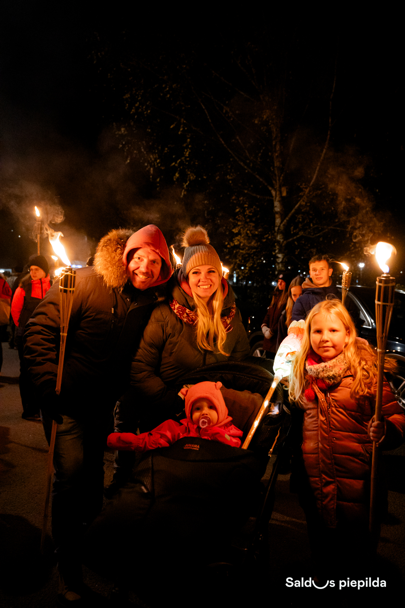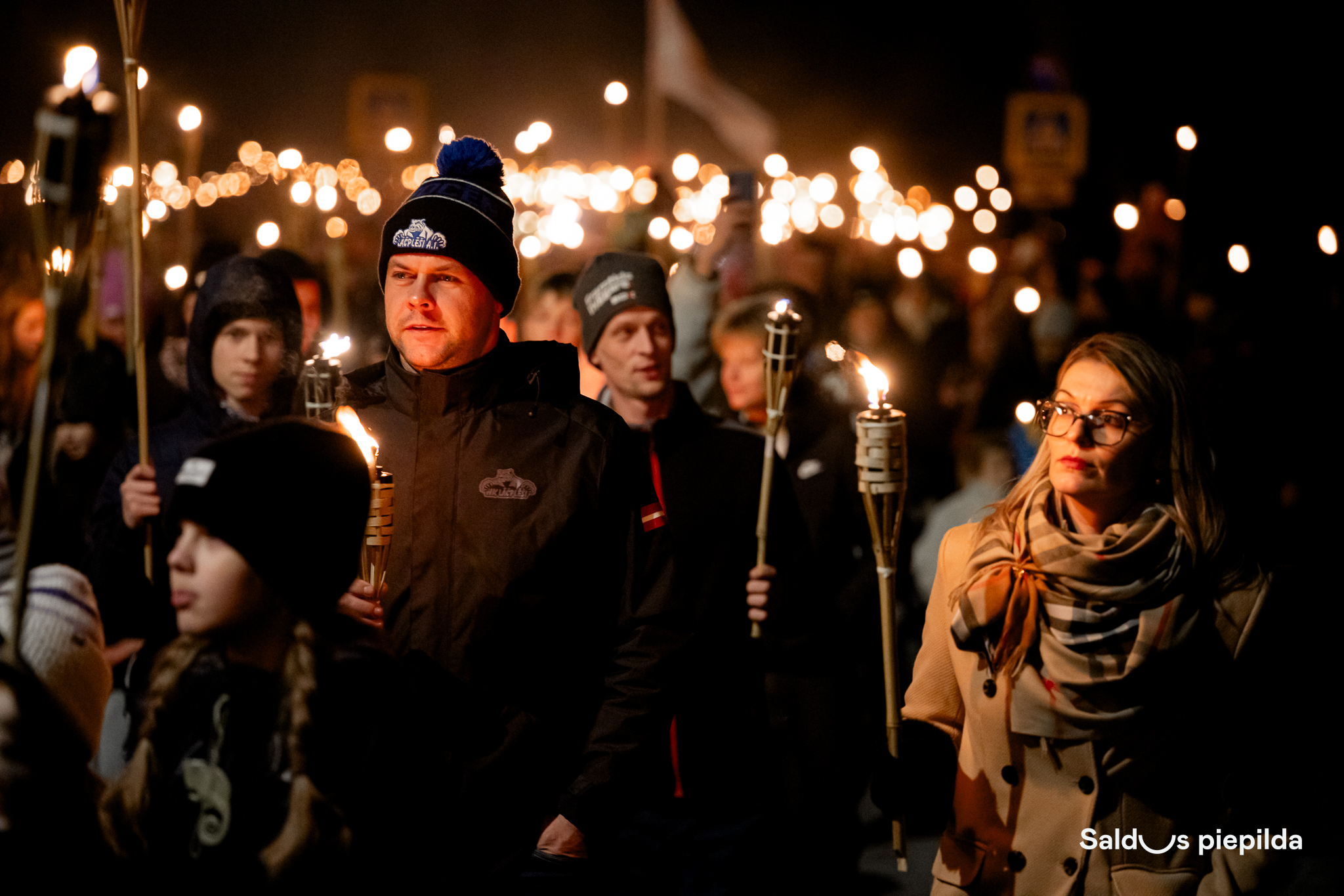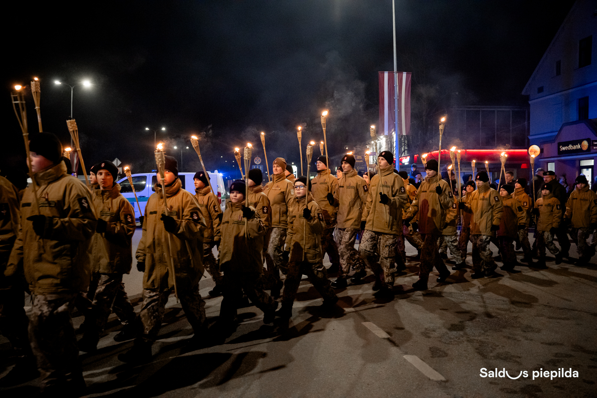11. novembra vakarā Saldū valdīja vienota un patriotiska noskaņa, kad novadnieki un pilsētas viesi vienojās Lāpu gājienā. Tūkstošiem lāpu, sveču un stipru cilvēku devās cauri Saldus pilsētas ielām, radot īpašu gaismas un vienotības sajūtu. Šogad Lāpu gājienā piedalījās arī Saldus novada sadraudzības pilsētu delegācijas no Benficas (Portugāles) un Šilutes (Lietuvas).