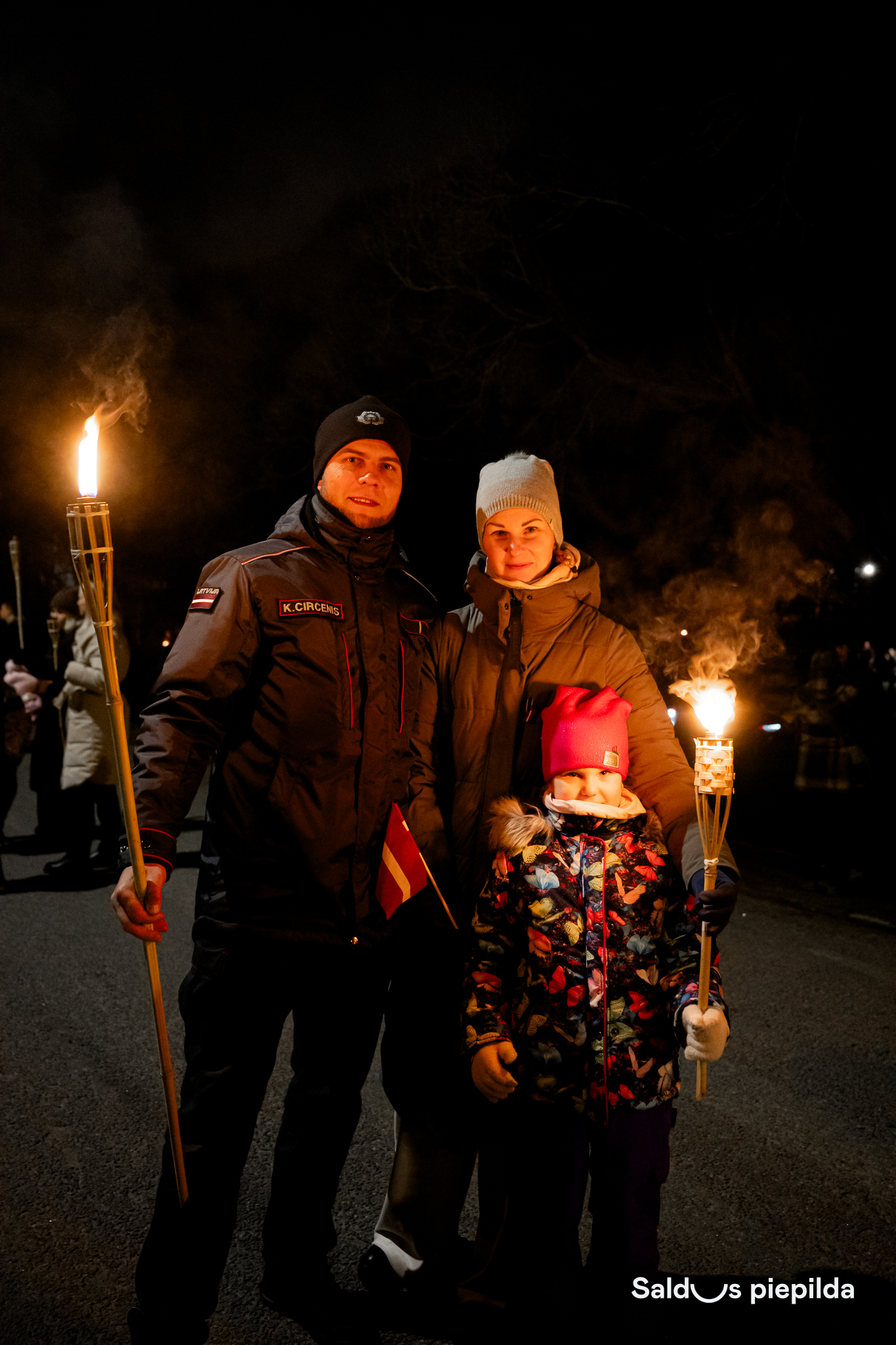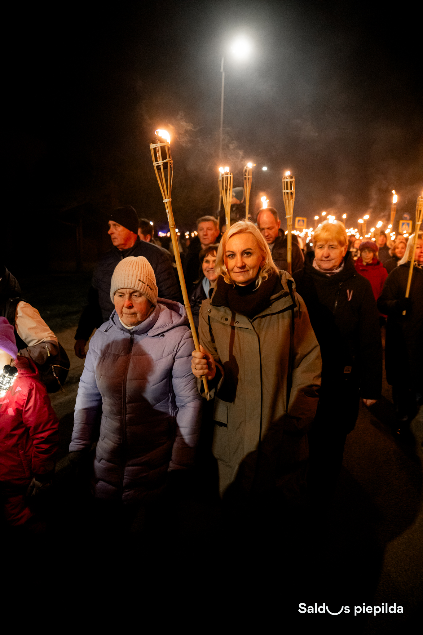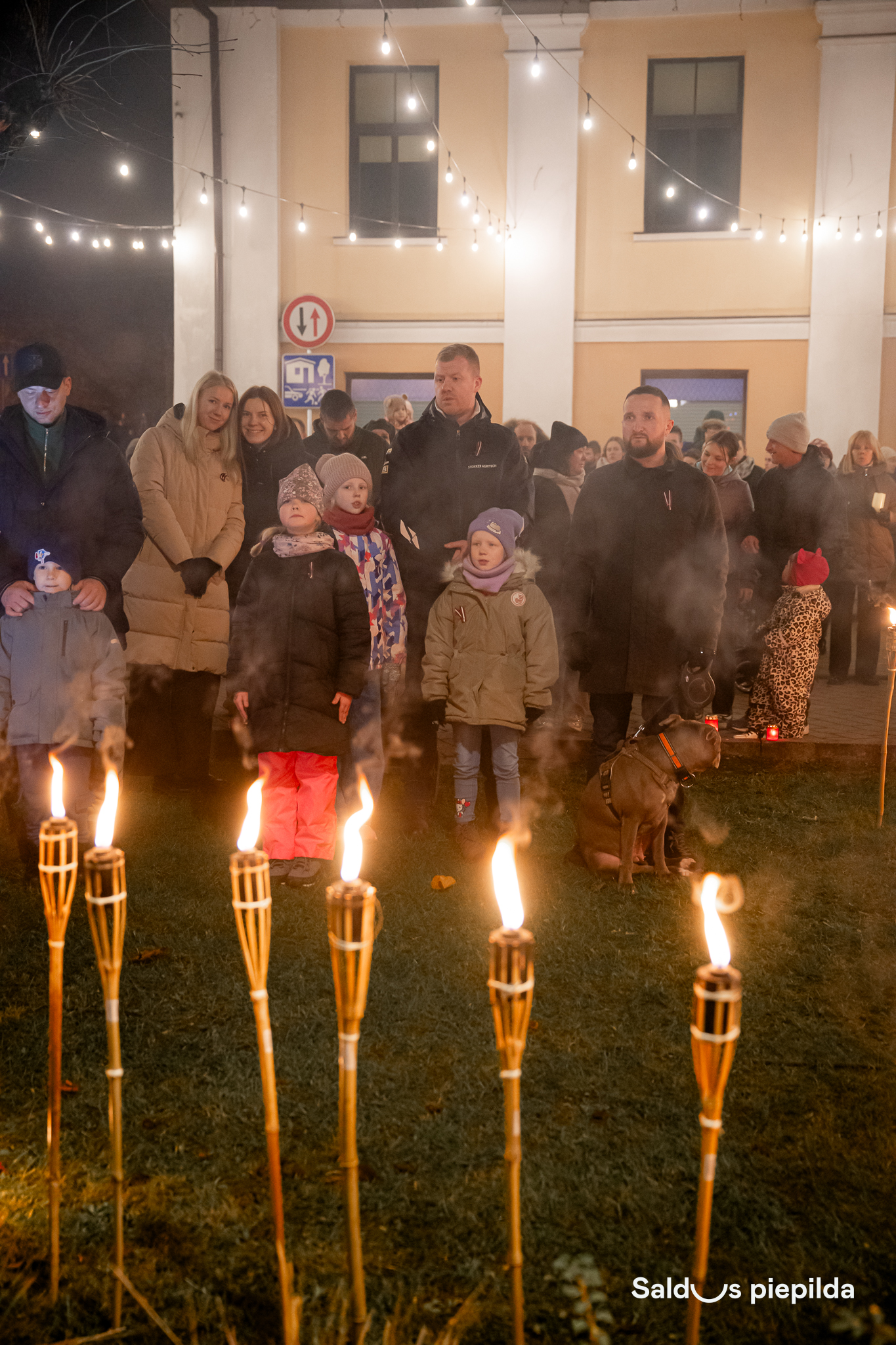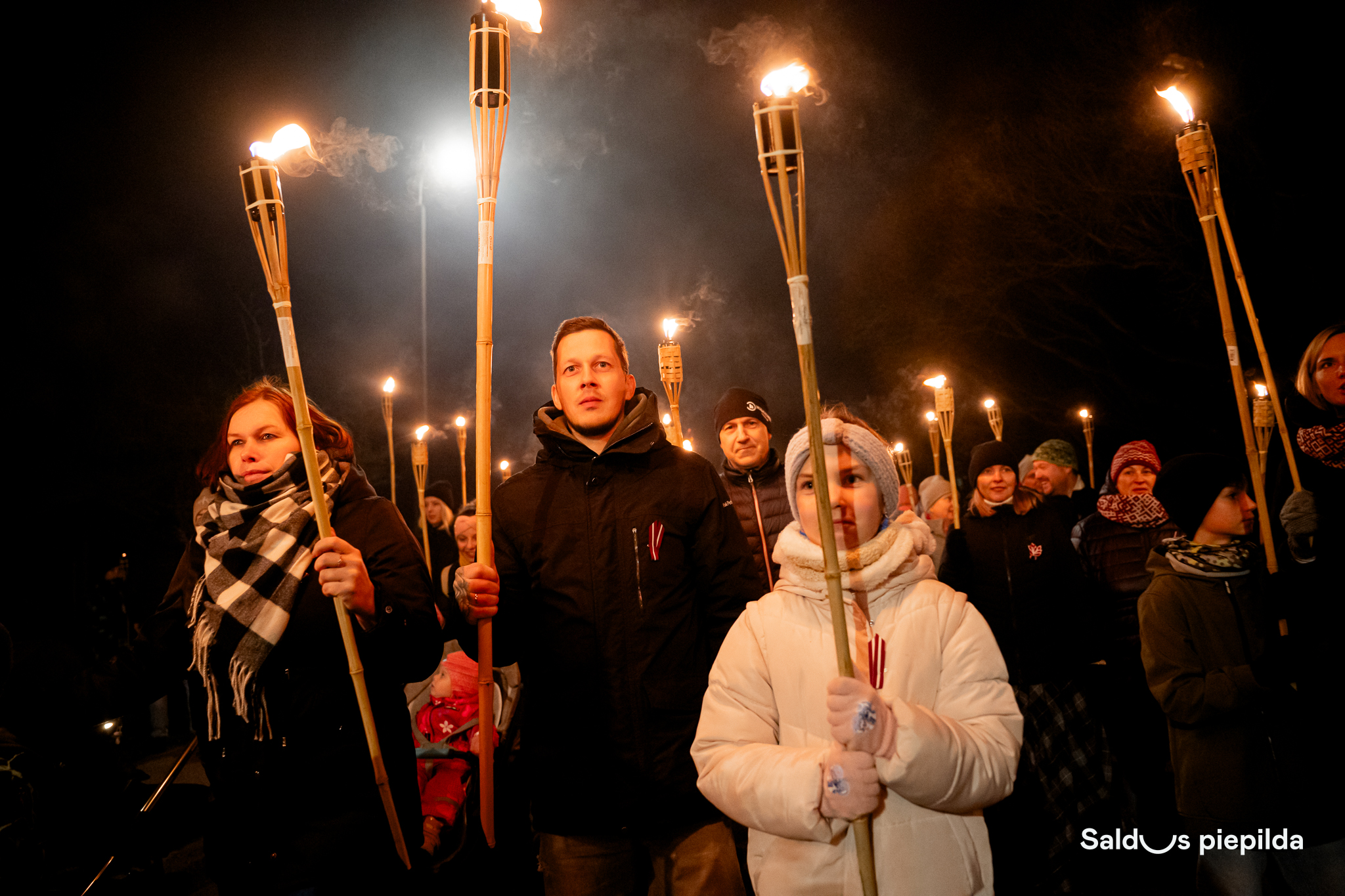 11. novembra vakarā Saldū valdīja vienota un patriotiska noskaņa, kad novadnieki un pilsētas viesi vienojās Lāpu gājienā. Tūkstošiem lāpu, sveču un stipru cilvēku devās cauri Saldus pilsētas ielām, radot īpašu gaismas un vienotības sajūtu. Šogad Lāpu gājienā piedalījās arī Saldus novada sadraudzības pilsētu delegācijas no Benficas (Portugāles) un Šilutes (Lietuvas).