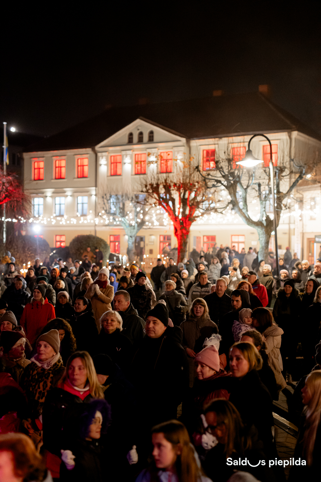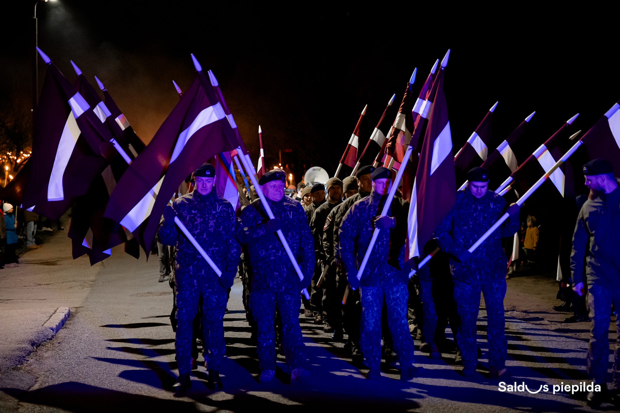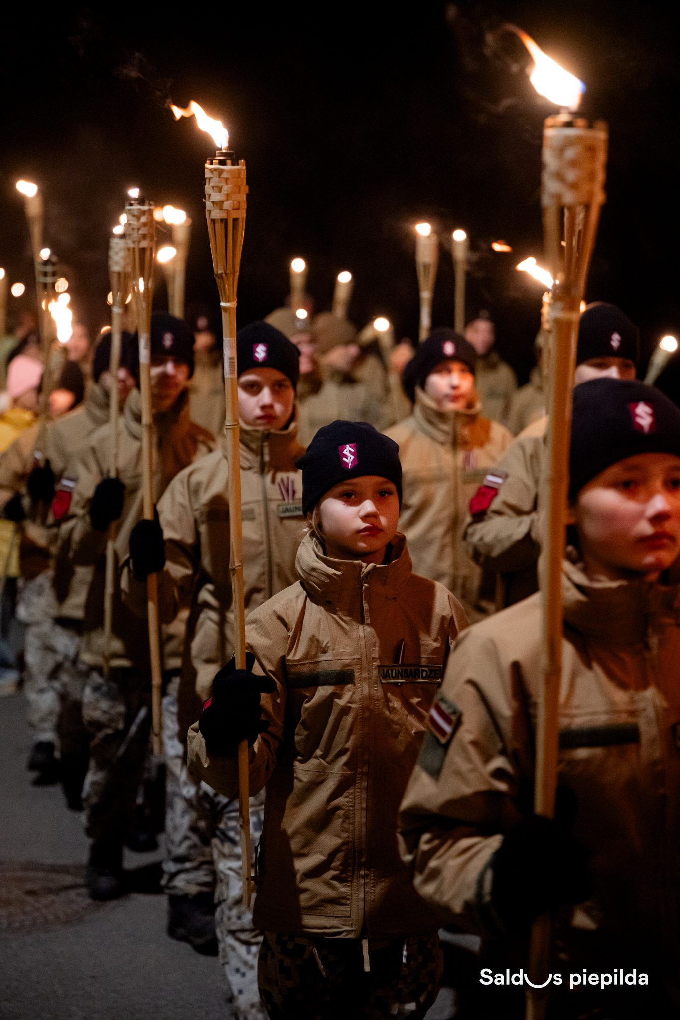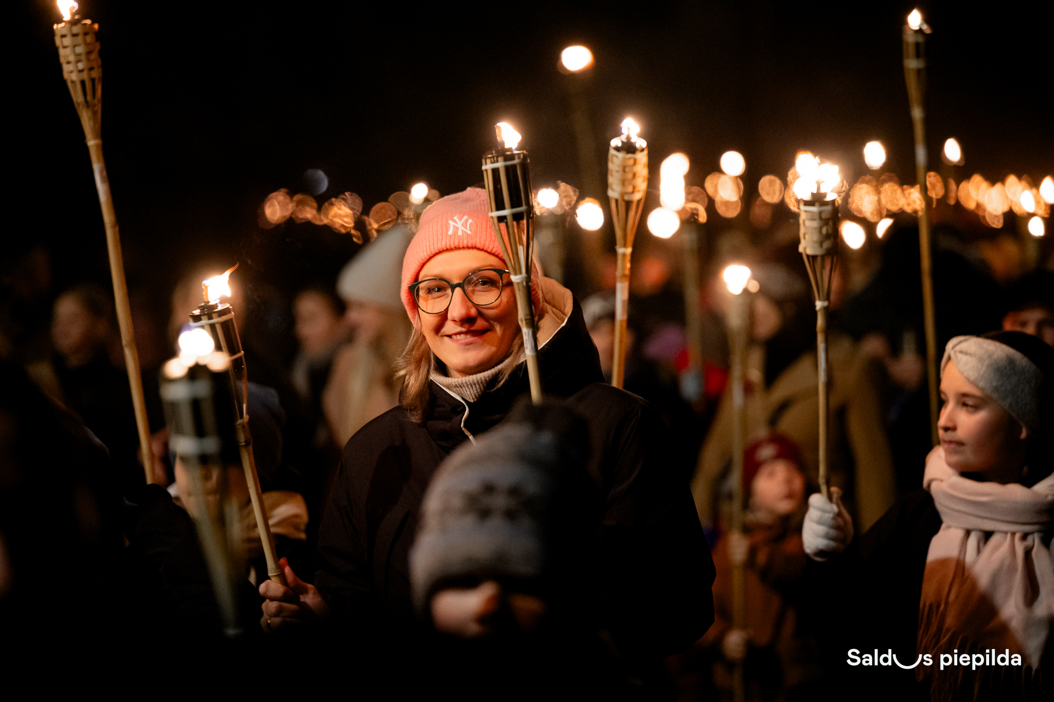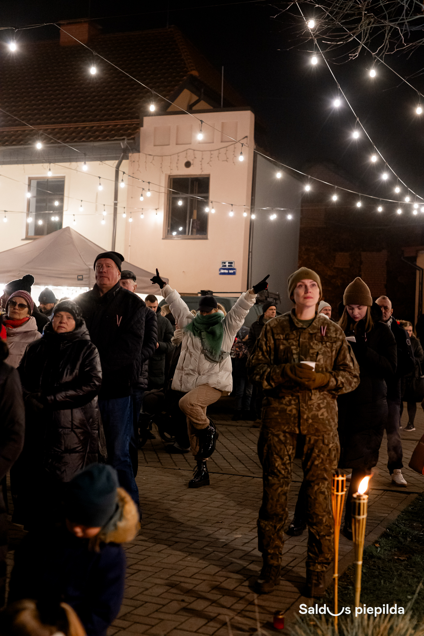11. novembra vakarā Saldū valdīja vienota un patriotiska noskaņa, kad novadnieki un pilsētas viesi vienojās Lāpu gājienā. Tūkstošiem lāpu, sveču un stipru cilvēku devās cauri Saldus pilsētas ielām, radot īpašu gaismas un vienotības sajūtu. Šogad Lāpu gājienā piedalījās arī Saldus novada sadraudzības pilsētu delegācijas no Benficas (Portugāles) un Šilutes (Lietuvas).