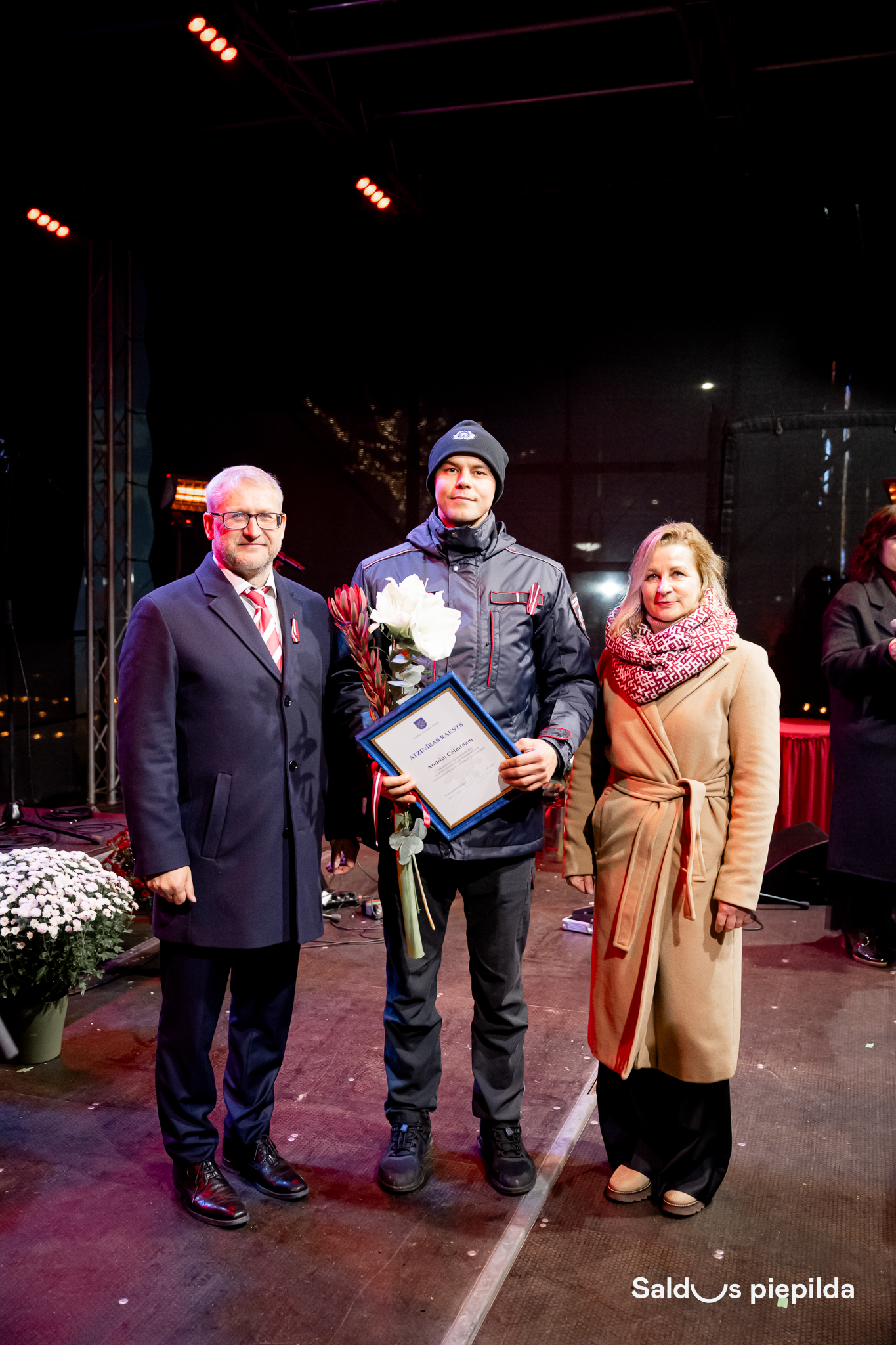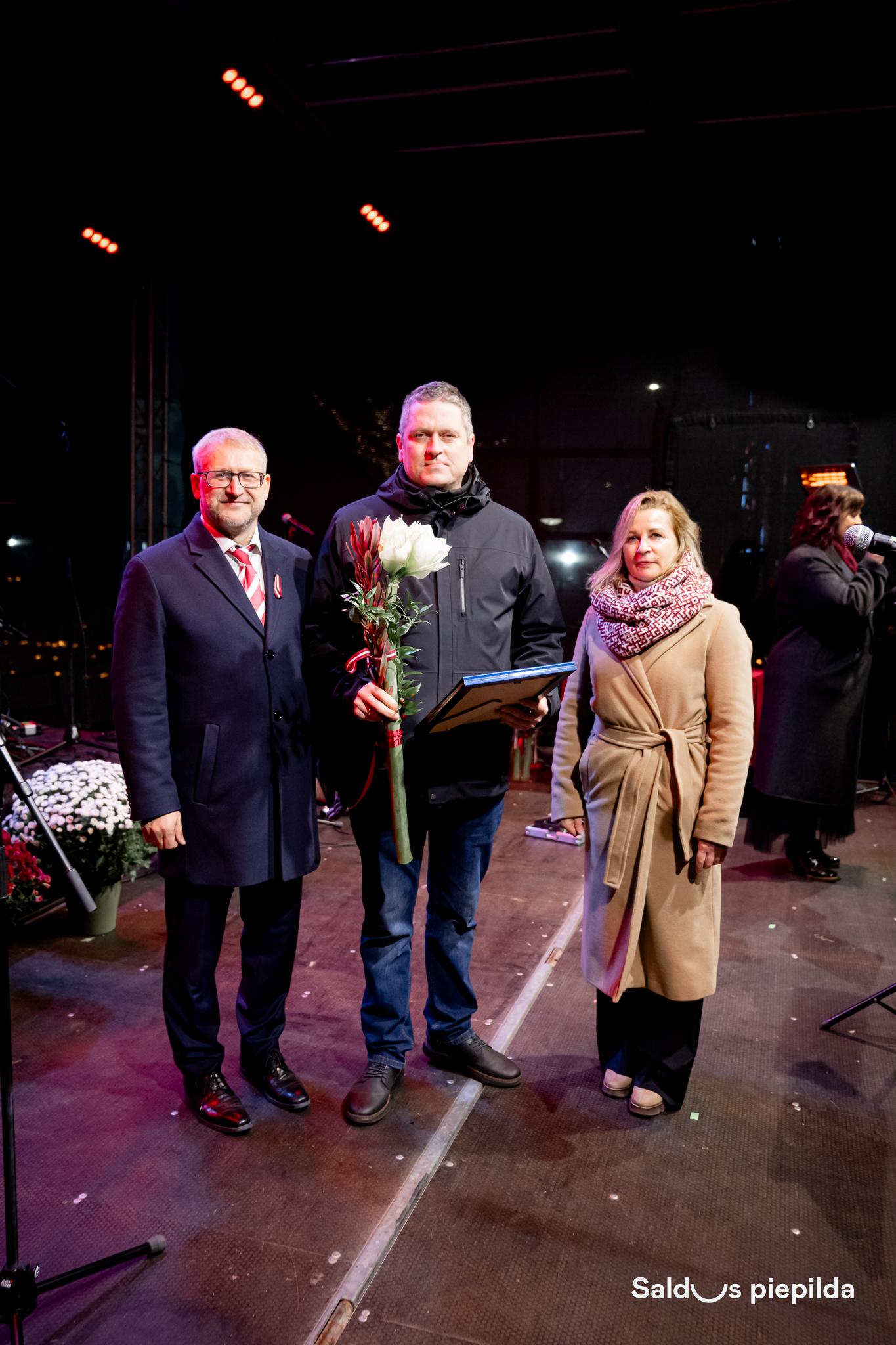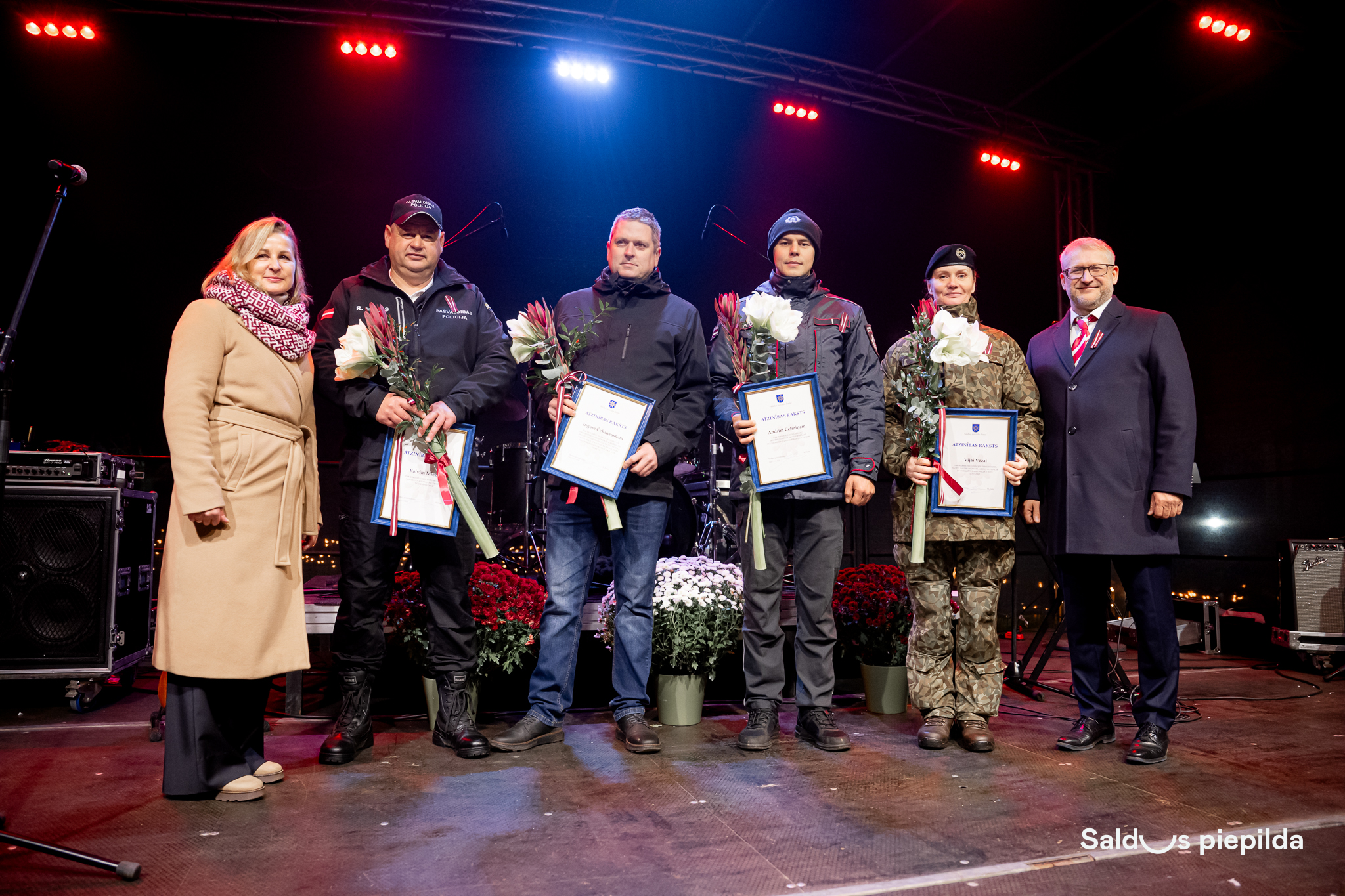 Svinīgajā pasākumā Saldus novada domes priekšsēdētājs Māris Zusts un priekšsēdētāja vietniece Kristīna Maslovska pasniedza Saldus novada apbalvojumu “Atzinības raksts” drošības struktūru pārstāvjiem, sakot paldies Pašvaldības policijas, Valsts policijas, Valsts ugunsdzēsības un glābšanas dienesta un Zemessardzes darbiniekiem par atbildīgu, ilgstošu un nesavtīgu darbu drošības un sabiedriskās kārtības nodrošināšanā Saldus novadā.
